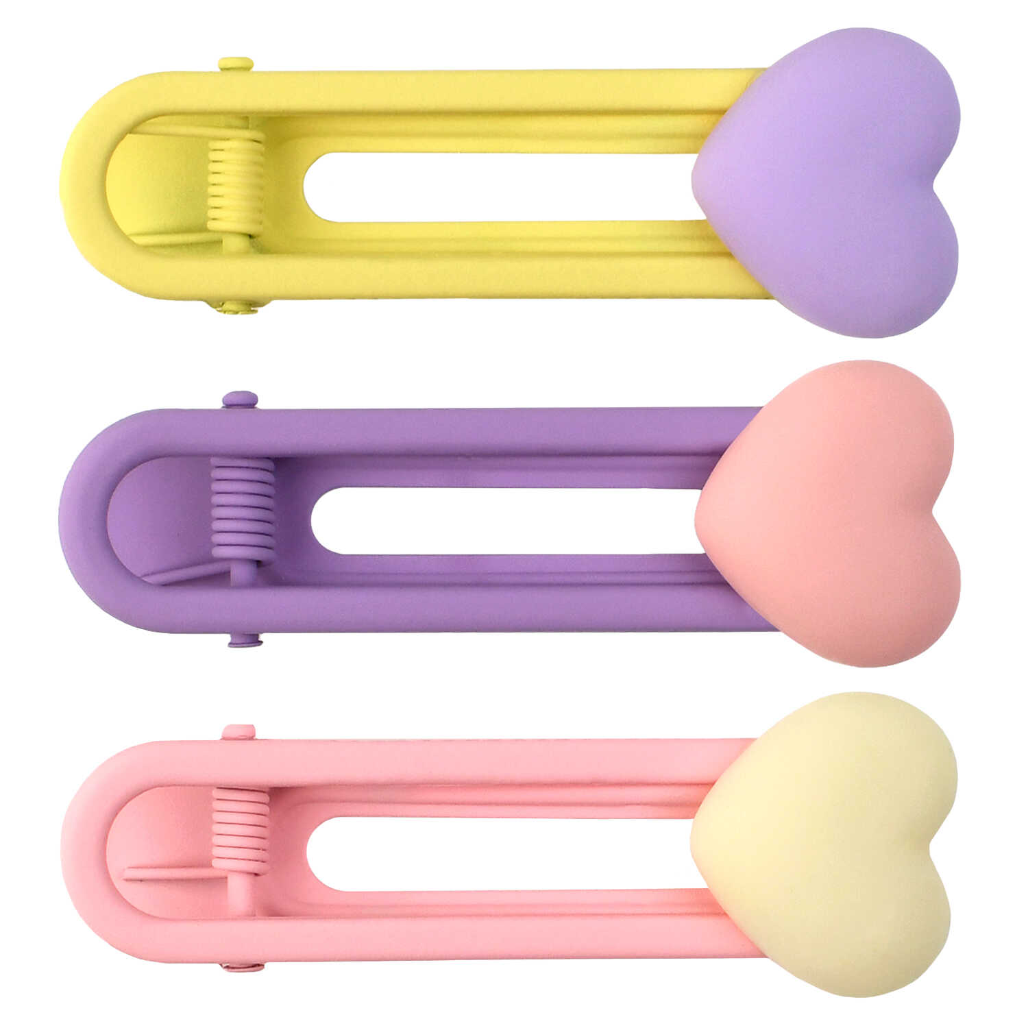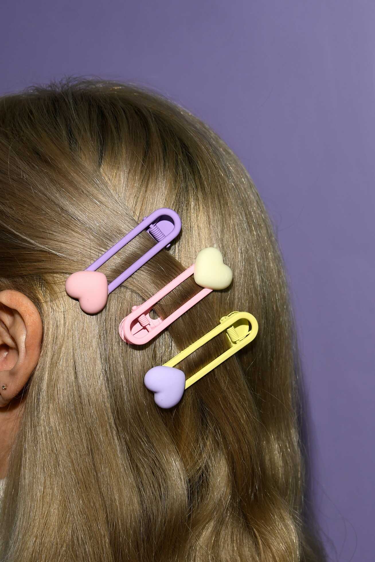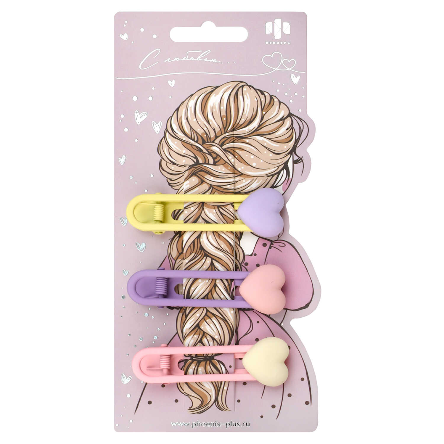 Набор заколок для волос «зажим», арт. 71789 / 10 СЕРДЕЧКИ (в наборе: 3шт., 5,9 см, черный металл, полиэфирная смола, цвет: жёлтый, розовый, сиреневый, подложка из мелованного картона + ПЭТ-пакет с европодвесом)