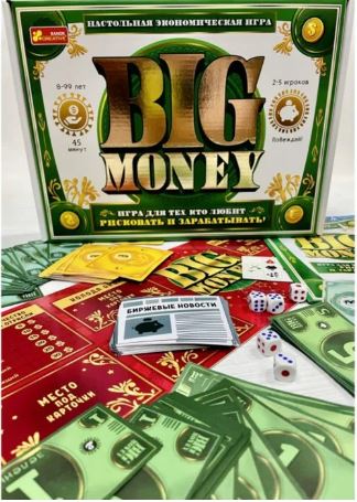 Все игроки становятся очень богатыми! Но кто станет богатым? "Big money" - это экономическая игра для всей семьи, в которой, просто бросая кубик, вы зарабатываете деньги. Играть и зарабатывать - легко и весело! Чтобы заработать больше, просто будь бдительным. Создай собственную империю и истреби всех конкурентов!
