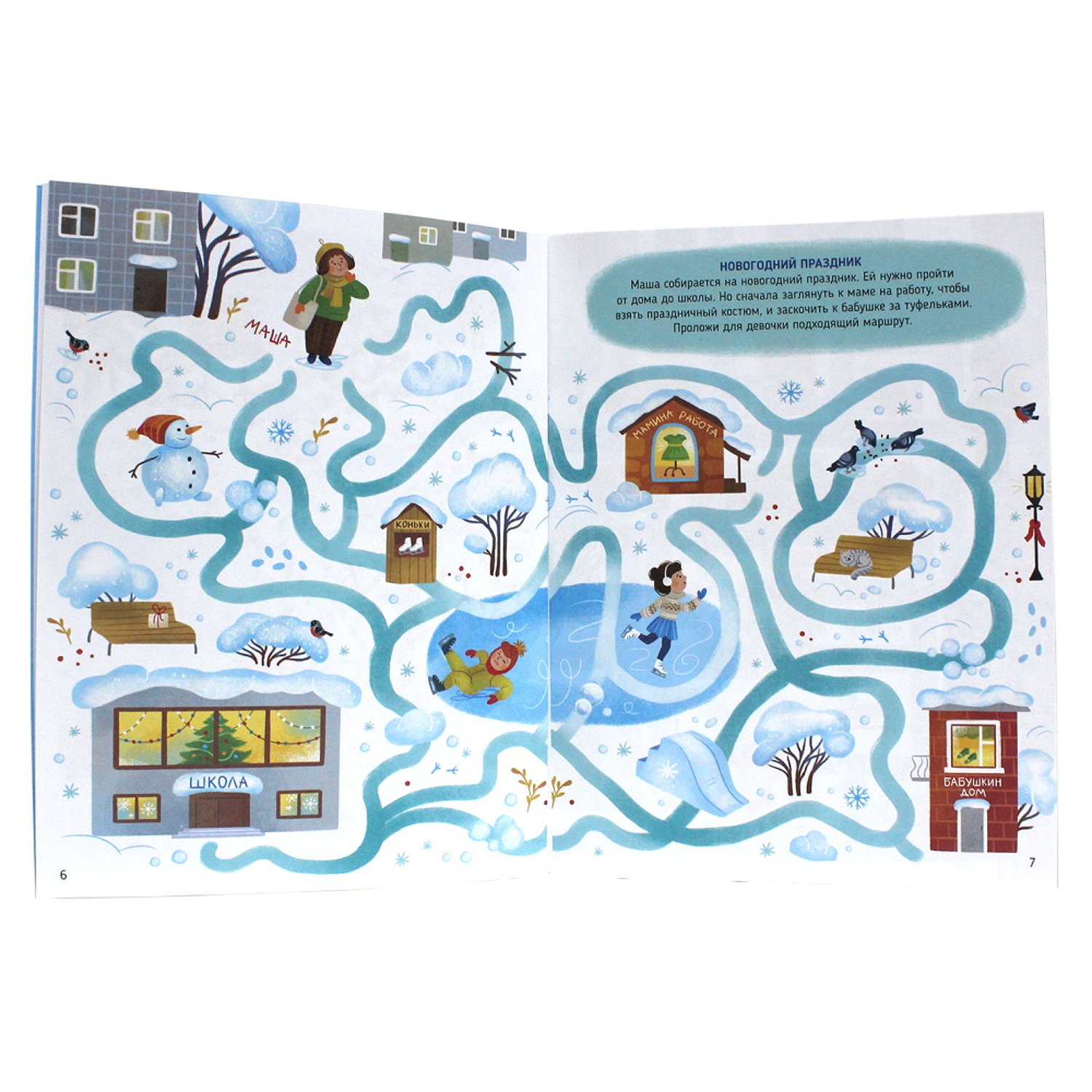 Можно ли увлечь ребенка с помощью книги, сделать досуг малыша ярче и интереснее? Конечно же, можно! Книга новогодних лабиринтов подарит малышам возможность отправиться в незабываемое путешествие по её страницам. Детвора прокатится вместе с Дедушкой Морозом на санях, слепит снеговика, поиграет в снежки, сожжёт ёлку и побывает в гостях у Снежной королевы.