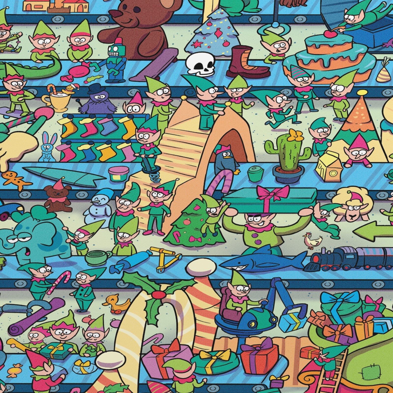 Перед вами новогодняя игра для самых внимательных и быстрых. А главное — в ней очень простые правила! Вытягивайте карты с новогодними картинками или вопросами и ищите их на огромном игровом поле. Тот, кому это удаётся, получает карту. А победит тот, кто наберёт больше всех карт!