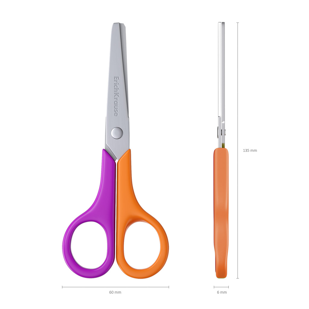 Ножницы с лезвиями из высококачественной нержавеющей стали с безопасными закругленными концами лезвий. Не ржавеют. Ручки классической формы изготовлены из ударопрочного пластика. Товар поставляется в нескольких вариантах цвета/дизайна без возможности выбора.