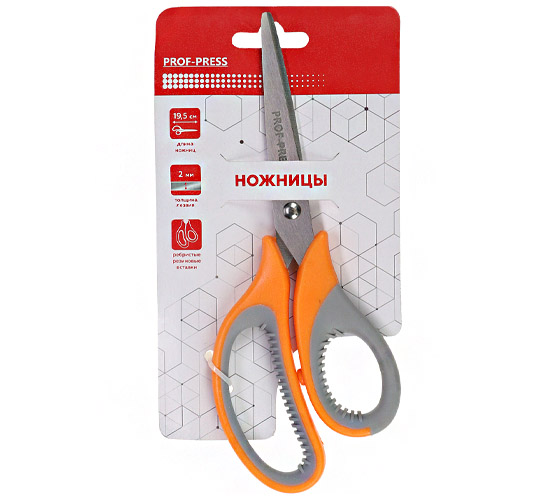 Ножницы канцелярские 19,5см лезвия из нержавеющей стали (2,0мм), прорезиненные ребристые ручки