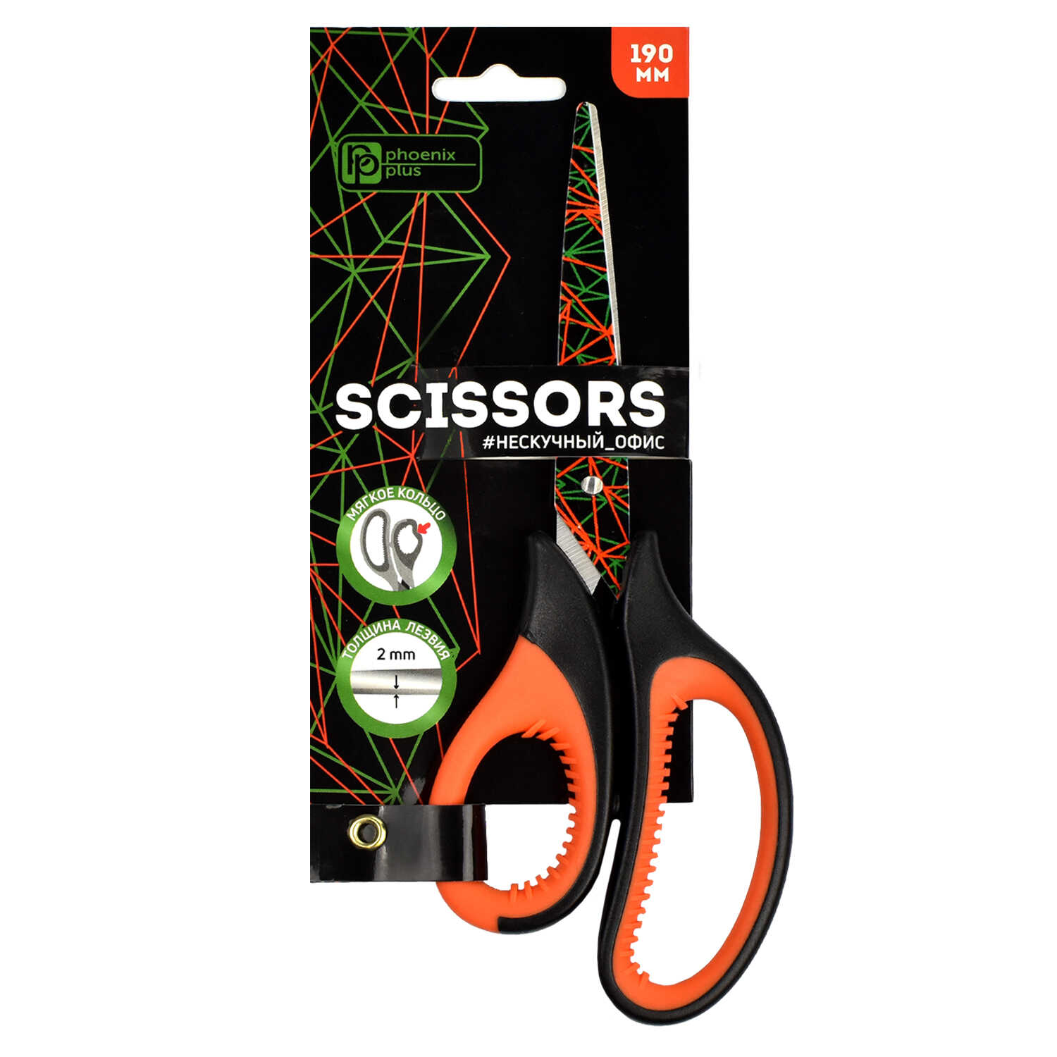 Ножницы офисные ГЕОМЕТРИЯ (зелёный, оранжевый, чёрный, 19 см)