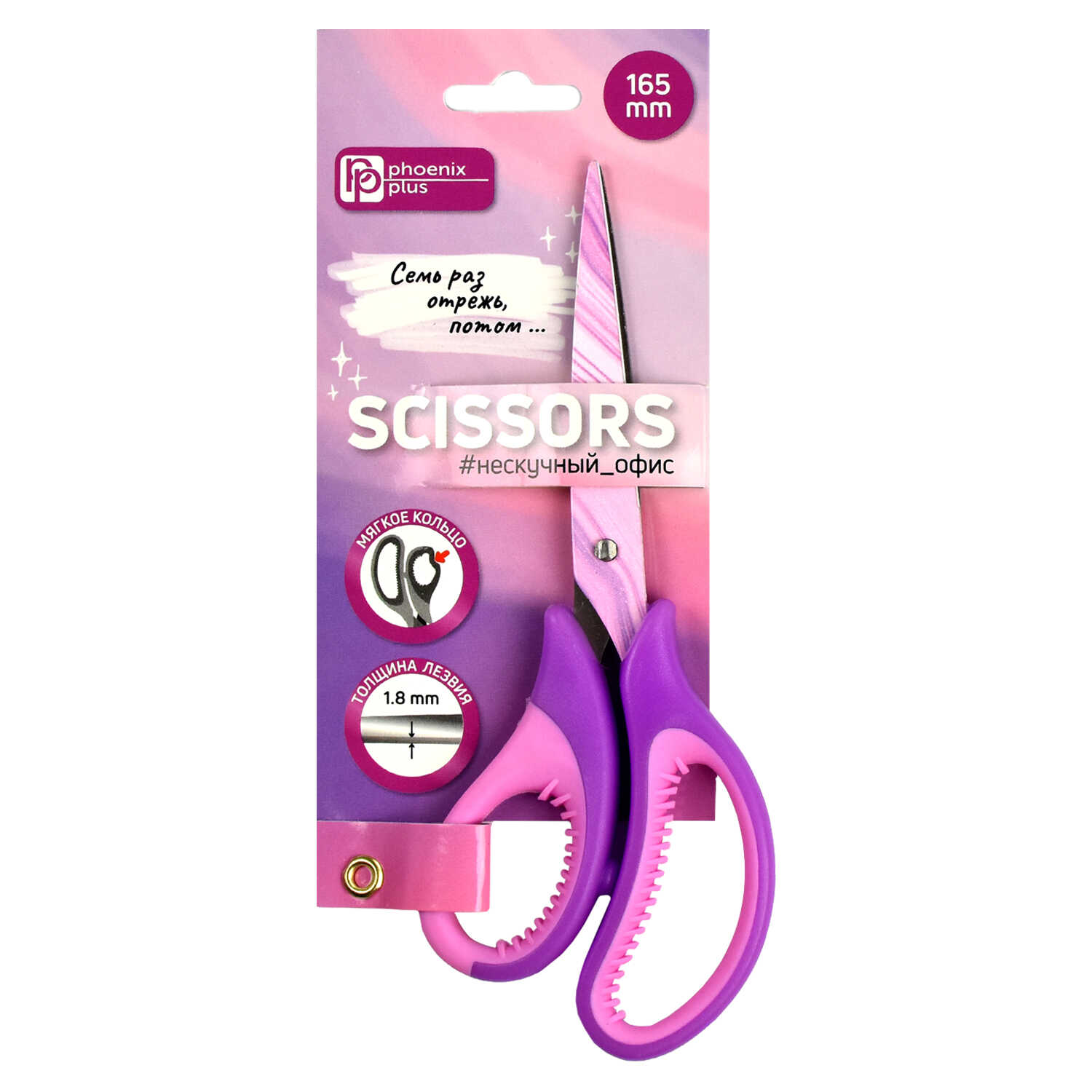 Ножницы офисные, длина лезвия: 7 см, асимметричные, картонная подложка с европодвесом.