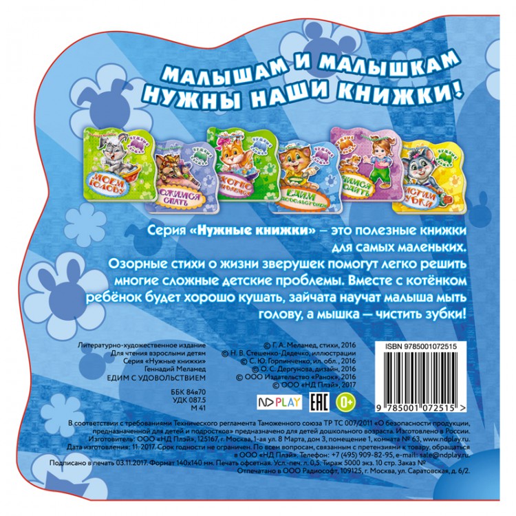 Полезные книжки научат малыша хорошо кушать, чистить зубки, охотно ложиться спать, умываться… Такие сложные детские проблемы легко решить, если на помощь приходят озорные зверята – герои забавных стихов наших добрых книжек.