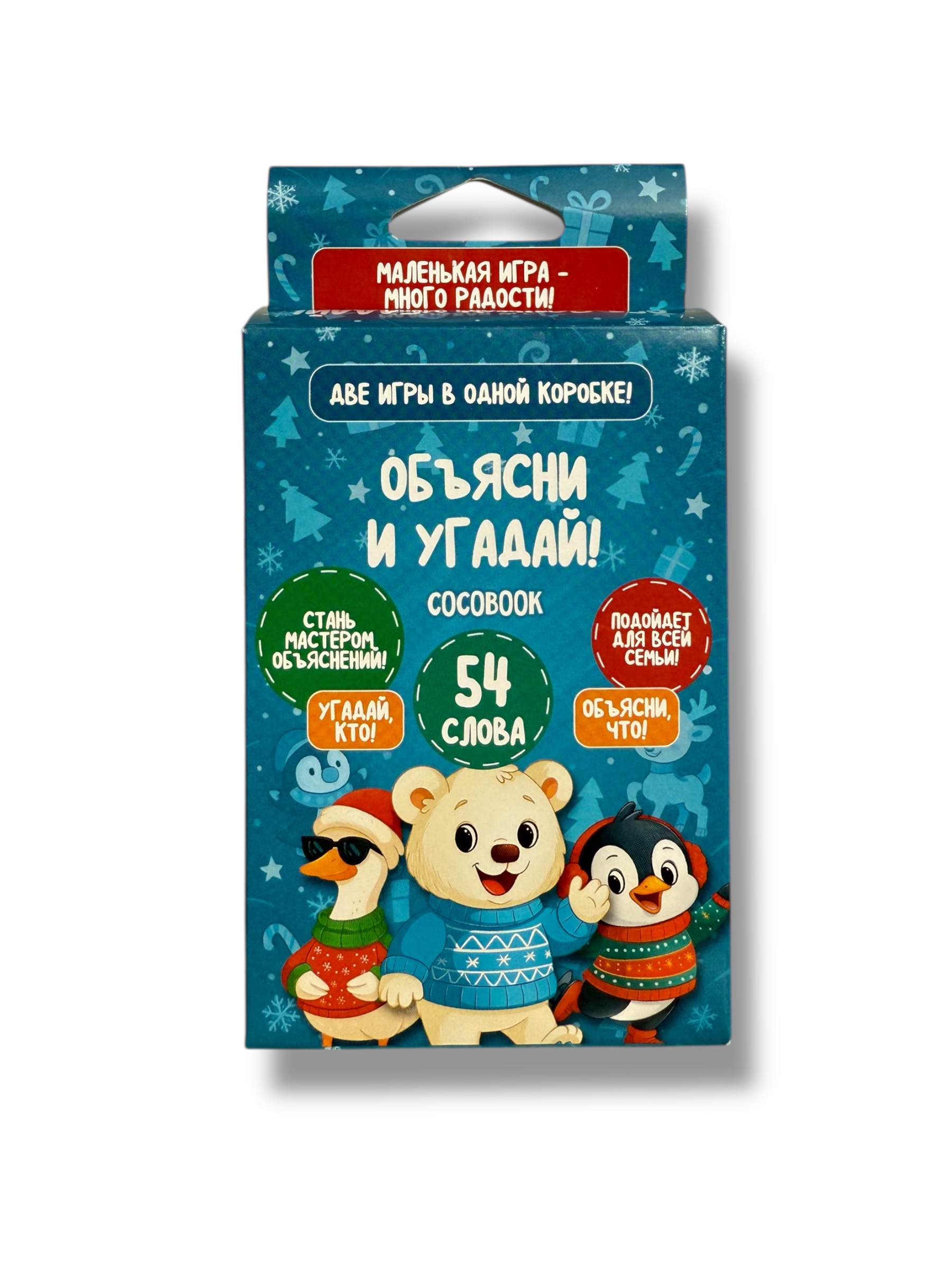 Игра развивает внимание, смекалку и навыки общения, а удобный формат позволяет играть дома или в дороге. Отличный способ собрать друзей и близких за весёлым развлечением в праздничные дни. Для всей семьи и компании друзей.