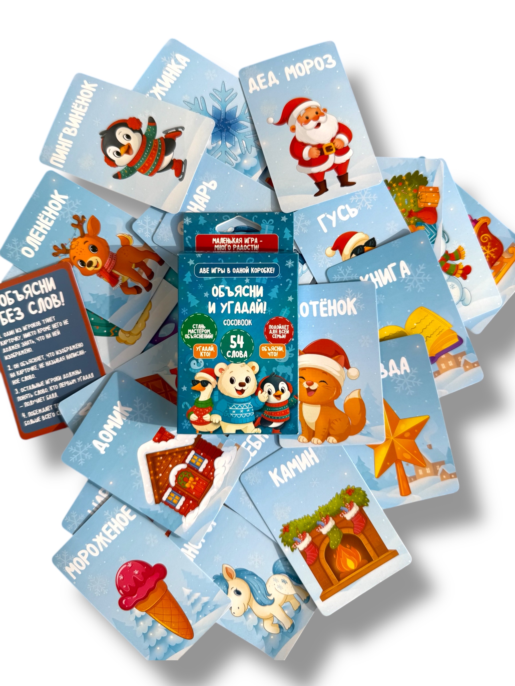 Погрузитесь в зимние приключения с настольной игрой «Объясни и угадай! Зимняя версия»! Весёлые карточки с зимними словами и заданиями превращают объяснение и угадывание в увлекательный процесс для всей семьи.
