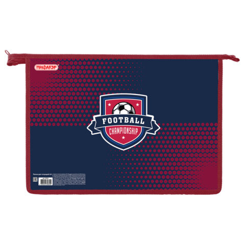 Папка для тетрадей формата А4 выполнена из ламинированного картона и пластика, по краям имеет тканевую окантовку. Одно отделение. Застежка-молния расположена по верхнему краю папки. Цветная печать.
