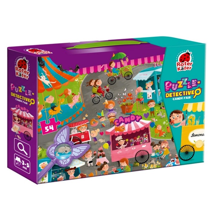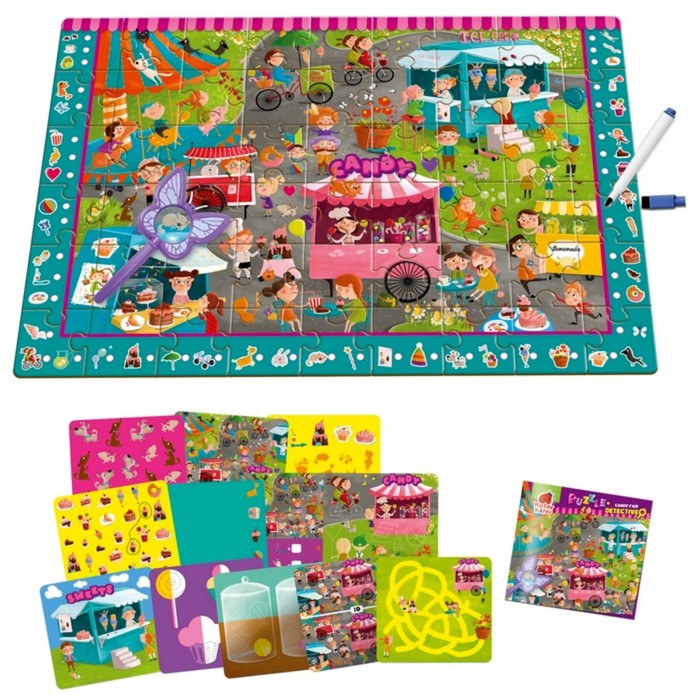 Почувствуйте себя настоящим детективом! Воспользуйтесь лупой и отыщите на пазле персонажей, сладости и различные атрибуты. Для этого сначала соберите пазловую картинку. Далее приступаем к поискам! Как только найдете нужного персонажа или предмет, отметьте это с помощью маркера. Игра развивает внимательность, усидчивость, воображение, логическое мышление и память.