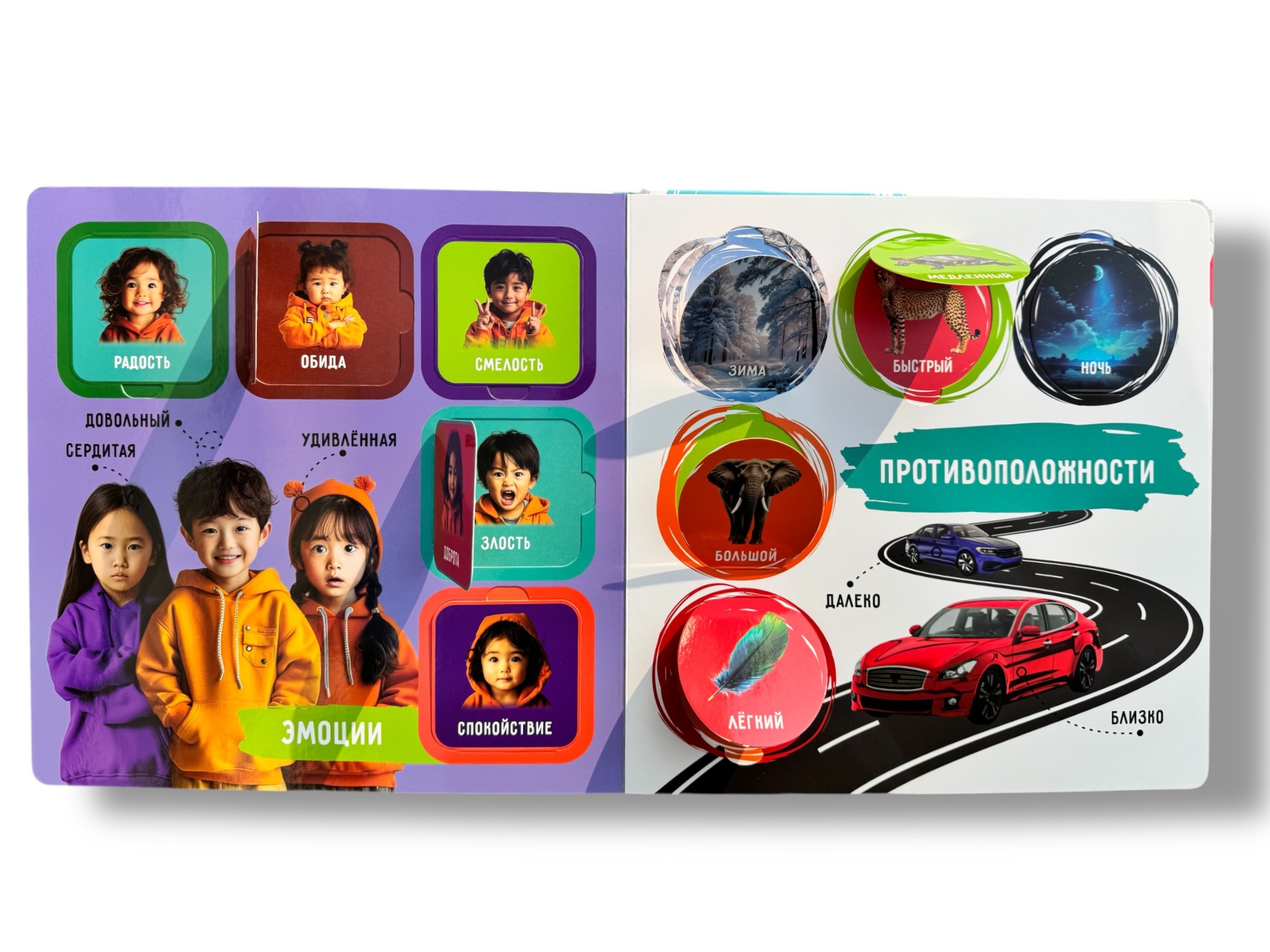 Приятная пухлая обложка — любимый элемент детей и родителей, который приятно держать в руках.
