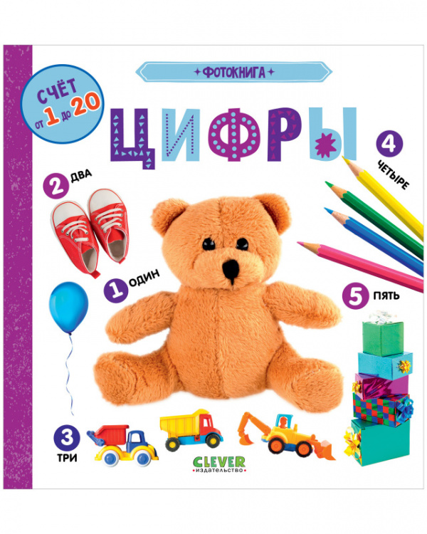 На каждом развороте фотокниги "Цифры" малыш будет знакомиться с новым числом, обводить пальчиком контуры крупных цифр по стрелкам, играть в "найди и покажи", отыскивая и считая заданные предметы и отвечать на вопросы. Кроме того, ребенок повторит формы и цвета. Благодаря большому формату издание вмещает на своих страницах множество предметов и займет ребенка надолго. А яркие фотографии и плотный картон позволят с успехом заниматься по книге даже с самыми маленькими читателями.
