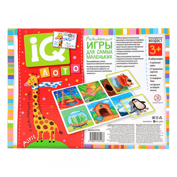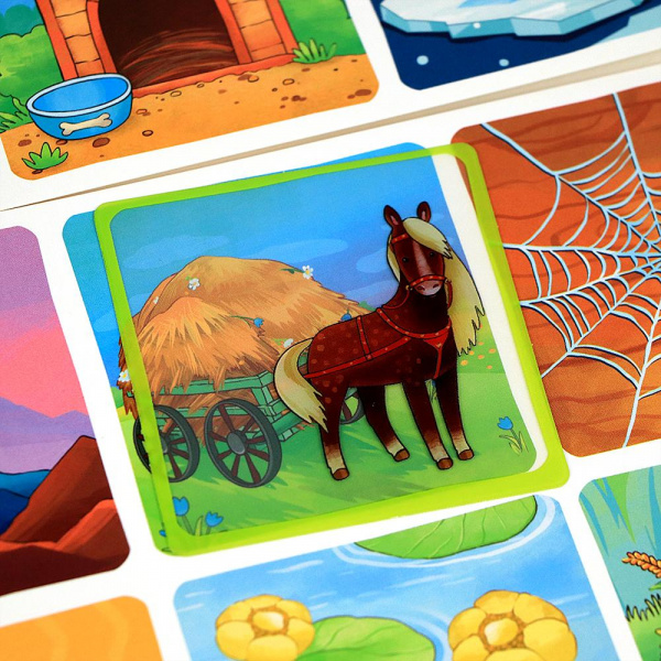 Игровой набор «Кто где живёт?» — лото, но не обычное, а обучающее, с прозрачными карточками. На картах-основах представлены места обитания и предметы, так или иначе связанные с различными животными. Ребёнку предстоит внимательно рассмотреть иллюстрацию и подобрать пластиковую карточку с подходящим животным. Прозрачные карточки позволяют малышу экспериментировать и самостоятельно искать решение. Игра в лото развивает зрительное восприятие, внимание, ассоциативное и логическое мышление, учит анализировать и сопоставлять. Лото разработано с учётом возрастных особенностей детей.
