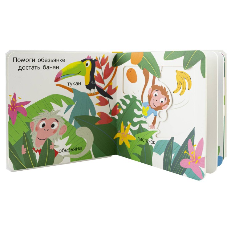 Долговечность книги обеспечивают плотные страницы из картона и надежно закрепленные подвижные детали.