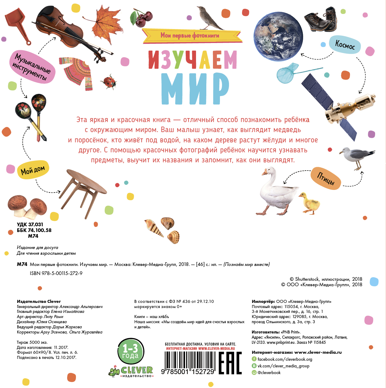 С помощью фотографий ребенок научится узнавать предметы, выучит их названия и запомнит, как они выглядят. Листайте странички, считайте, ищите на рисунках ответы на вопросы, играйте в веселую игру «Найди и покажи» всей семьей.