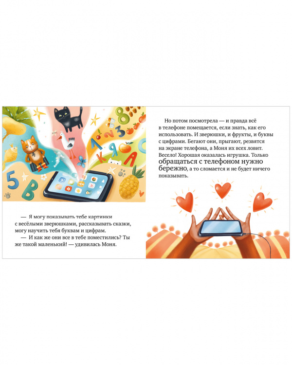 Книга «Мама, дай телефон!» научит правилам, которые важно знать каждому современному ребенку: не разговаривать с незнакомцами, бережно обращаться с гаджетом и никогда не играть с телефоном целый день.