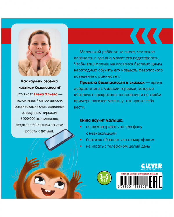Книга «Мама, дай телефон!» — это три короткие и увлекательные сказки, которые помогут ребенку усвоить важные правила обращения с гаджетом. Обаятельная героиня, обезьянка Моня, на своем примере покажет, как надо и не надо себя вести, а правила-помощники и вопросы для размышления помогут закрепить знания.