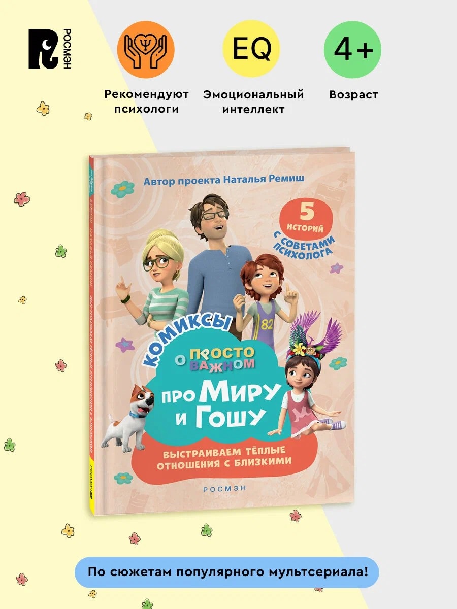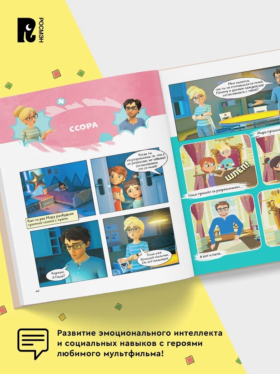Полезные истории про Миру и Гошу в формате комиксов от писательницы и продюсера Натальи Ремиш. В книгу вошли 5 сюжетов из популярного мультфильма с комментариями психолога. Издание станет отличным подарком детям от 4-х лет, их родителям и всем поклонникам мультсериала.