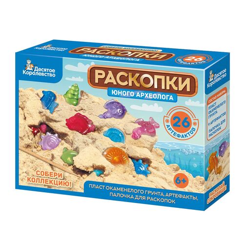 В наборе Раскопки для детей «Юный археолог» (26 артефактов) скрыта целая коллекция драгоценных артефактов. Скорее приступай к раскопкам! Осторожно откалывай кусочки грунта при помощи деревянного стека и находи сокровища.