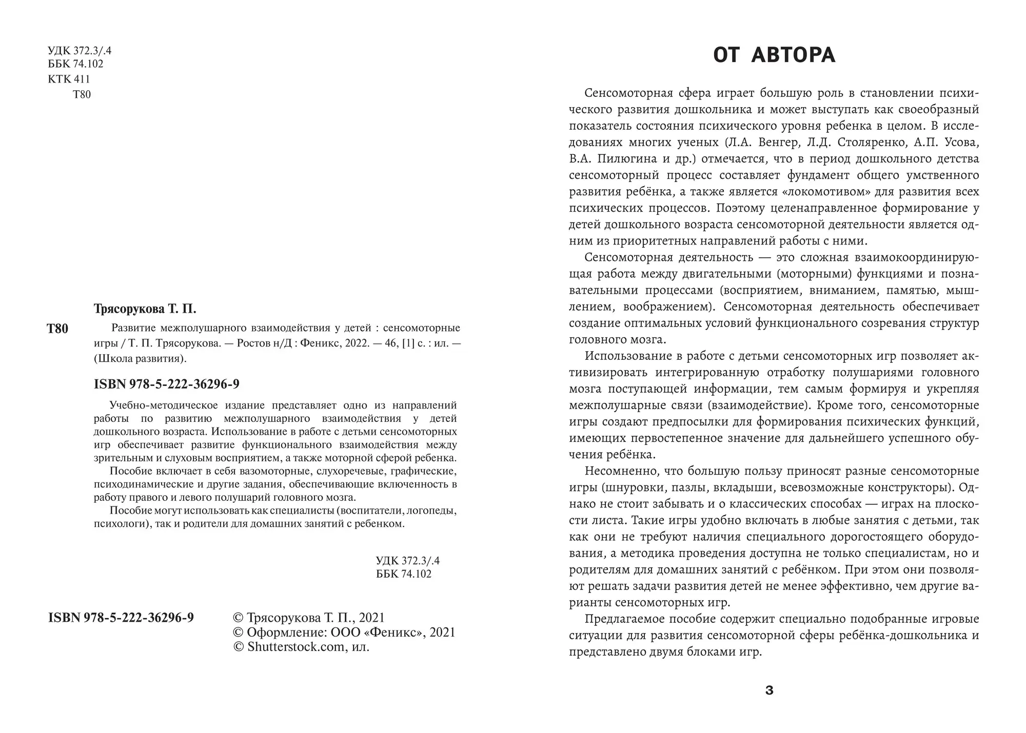 Учебно-методическое издание представляет одно из направлений работы по развитию межполушарного взаимодействия у детей дошкольного возраста. Использование в работе с детьми сенсомоторных игр обеспечивает развитие функционального взаимодействия между зрительным и слуховым восприятием, а также моторной сферой ребенка.