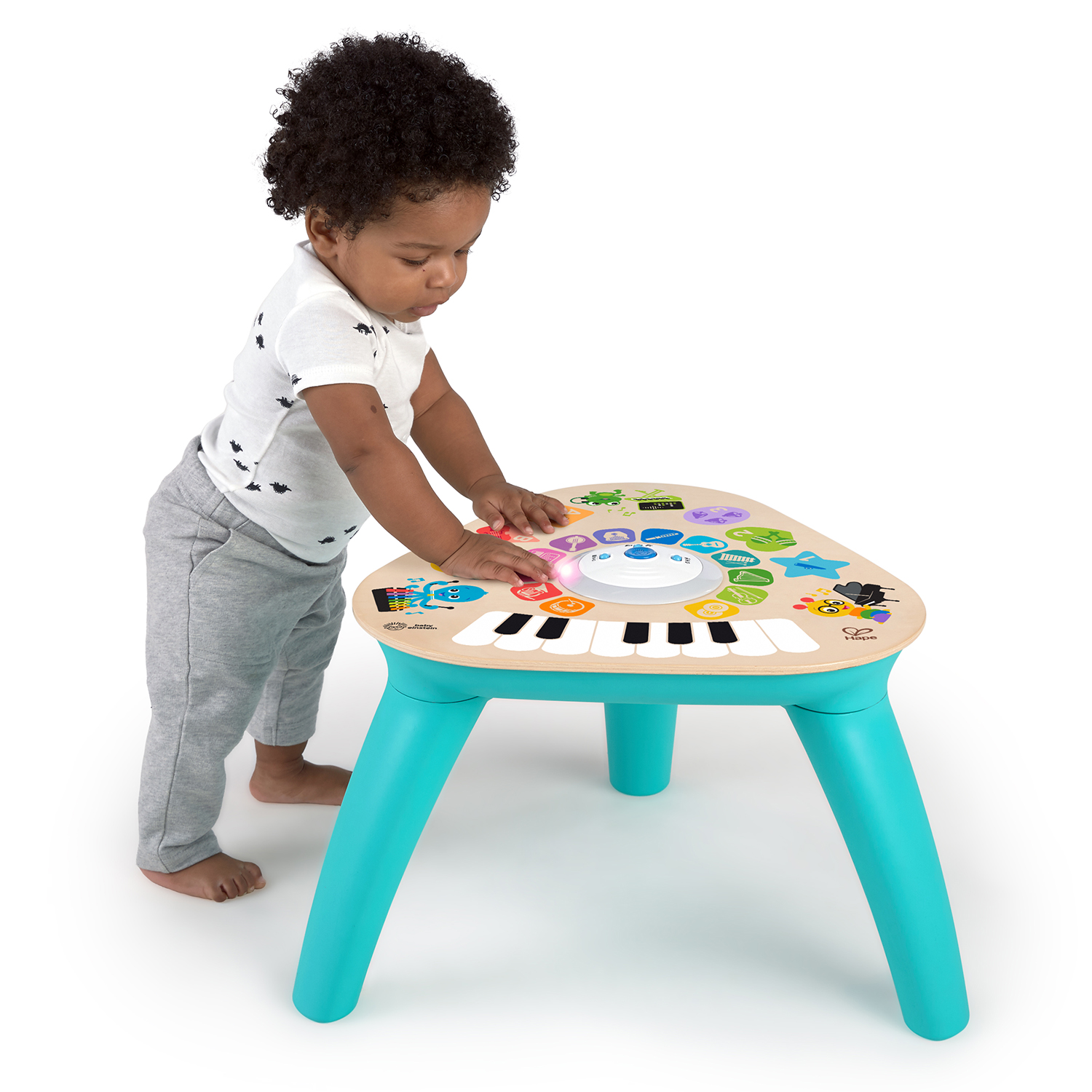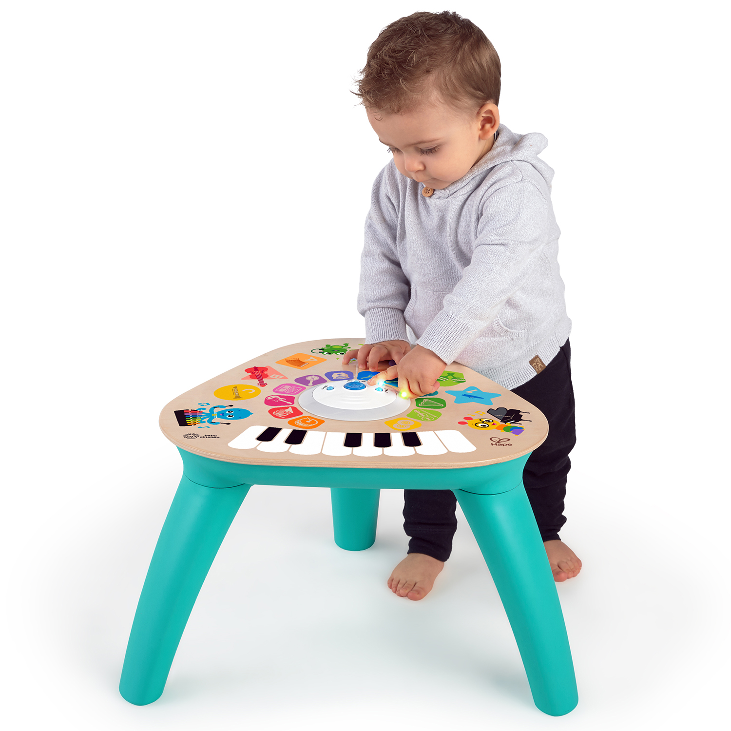 Это не просто столик, это музыкальная станция, почти диджейский пульт. • Игрушка для малышей "Музыкальный столик" оснащена премиальной технологией Magic Touch (Волшебное прикосновение). • Просто прикасаясь к поверхности, ребёнок знакомится со звучанием 22 инструментов. • Есть три режима сложности: в простом — активируются звуковые эффекты, в режиме обучения — малыш учит инструменты и цвета по названиям. • Благодаря такому разнообразию, музыкальная станция никогда не станет скучной. Ваш кроха будет увлечённо извлекать звуки, попутно развивая моторику, музыкальный слух и чувство ритма. • Если малышу удобнее играть сидя на полу, просто снимите ножки стола. |