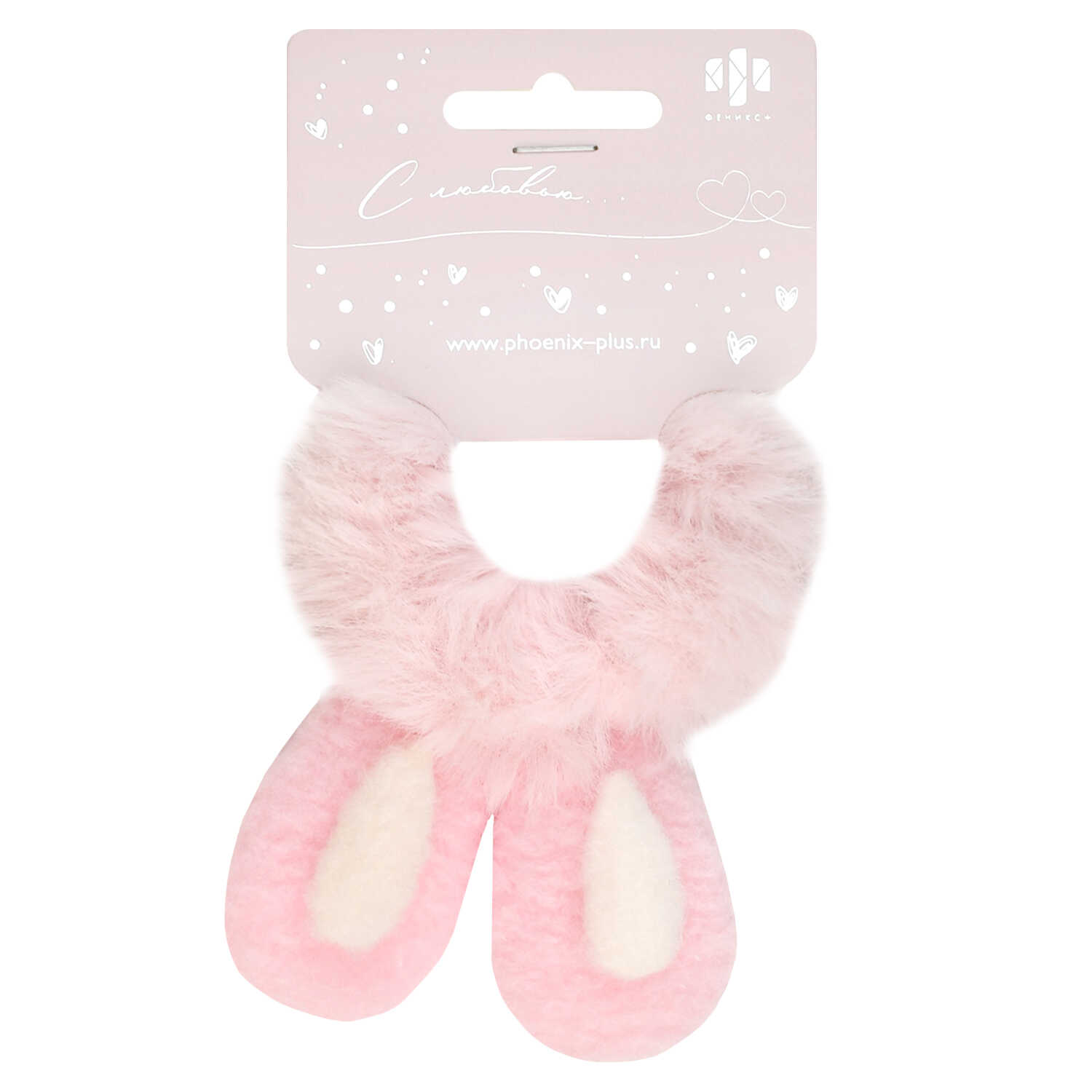 Резинка для волос арт. 71826 / 10 ПУШИСТЫЙ ЗАЙКА (в наборе: 1шт., б/р, вулканизированная резина, полиэстер, цвет: розовый, подложка из мелованного картона + ПЭТ-пакет с европодвесом)
