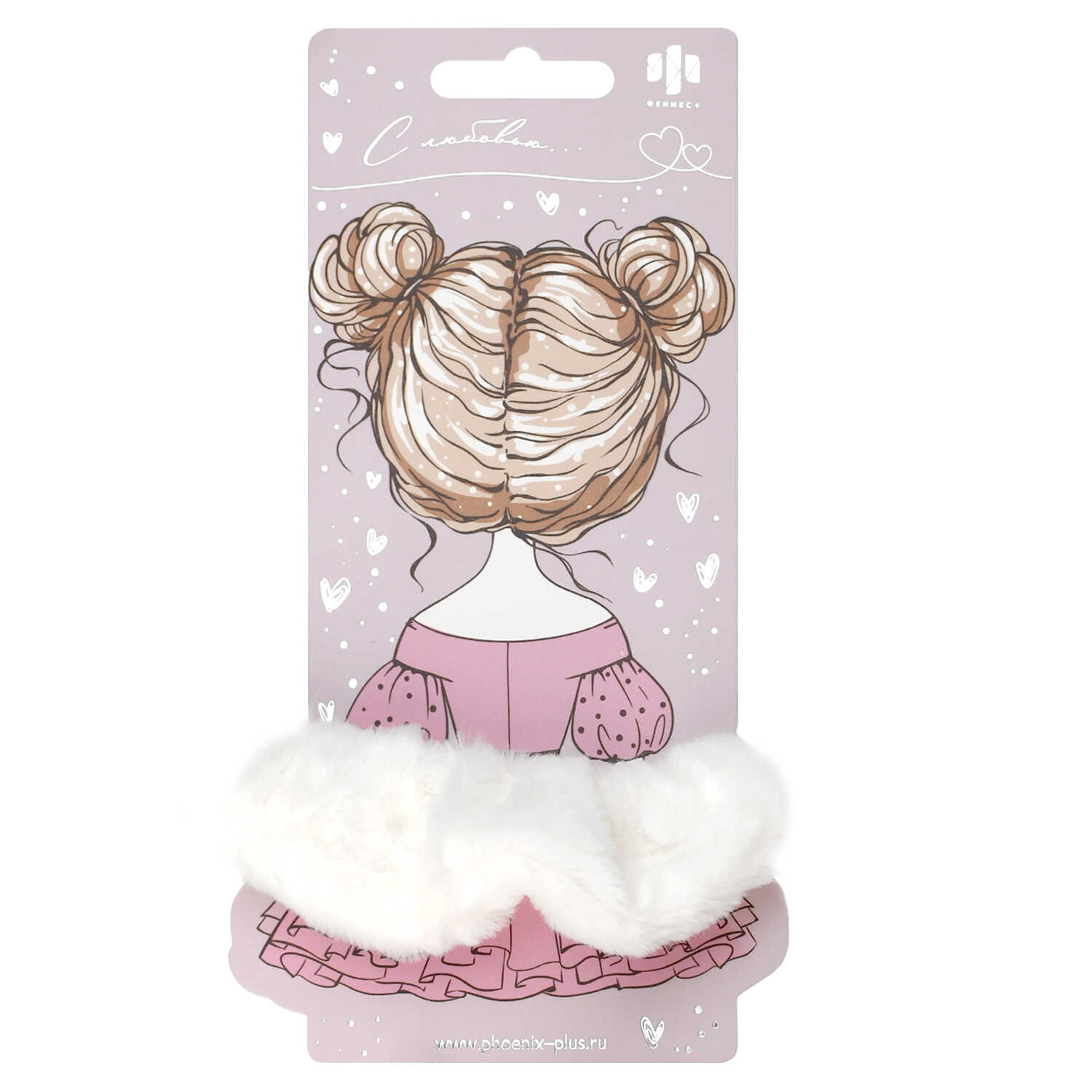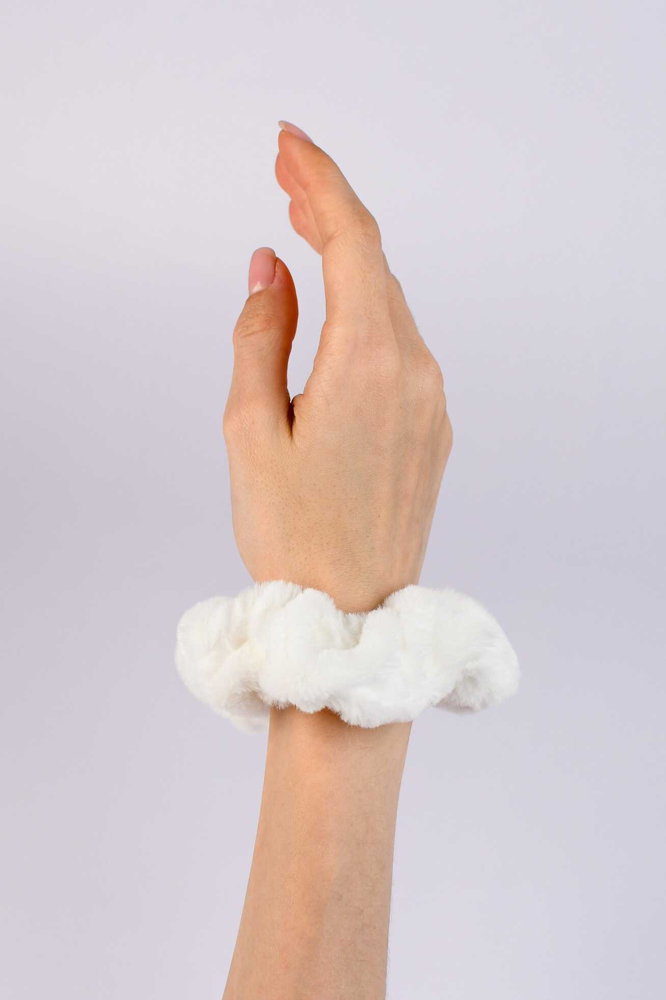 Резинка для волос арт. 71829 / 10 ПУШИСТАЯ (в наборе: 1шт., б/р, вулканизированная резина, полиэстер, цвет: молочный, подложка из мелованного картона + ПЭТ-пакет с европодвесом)