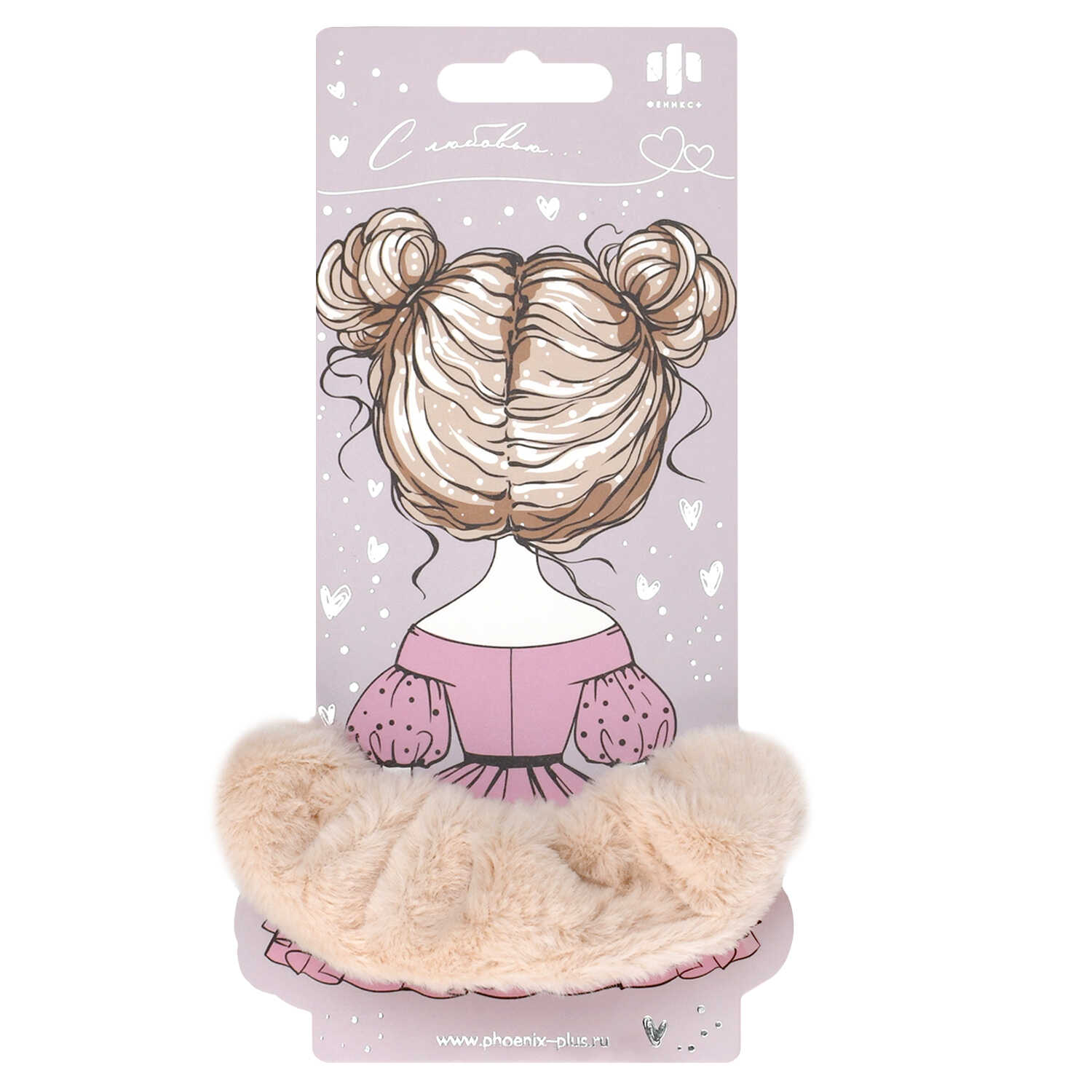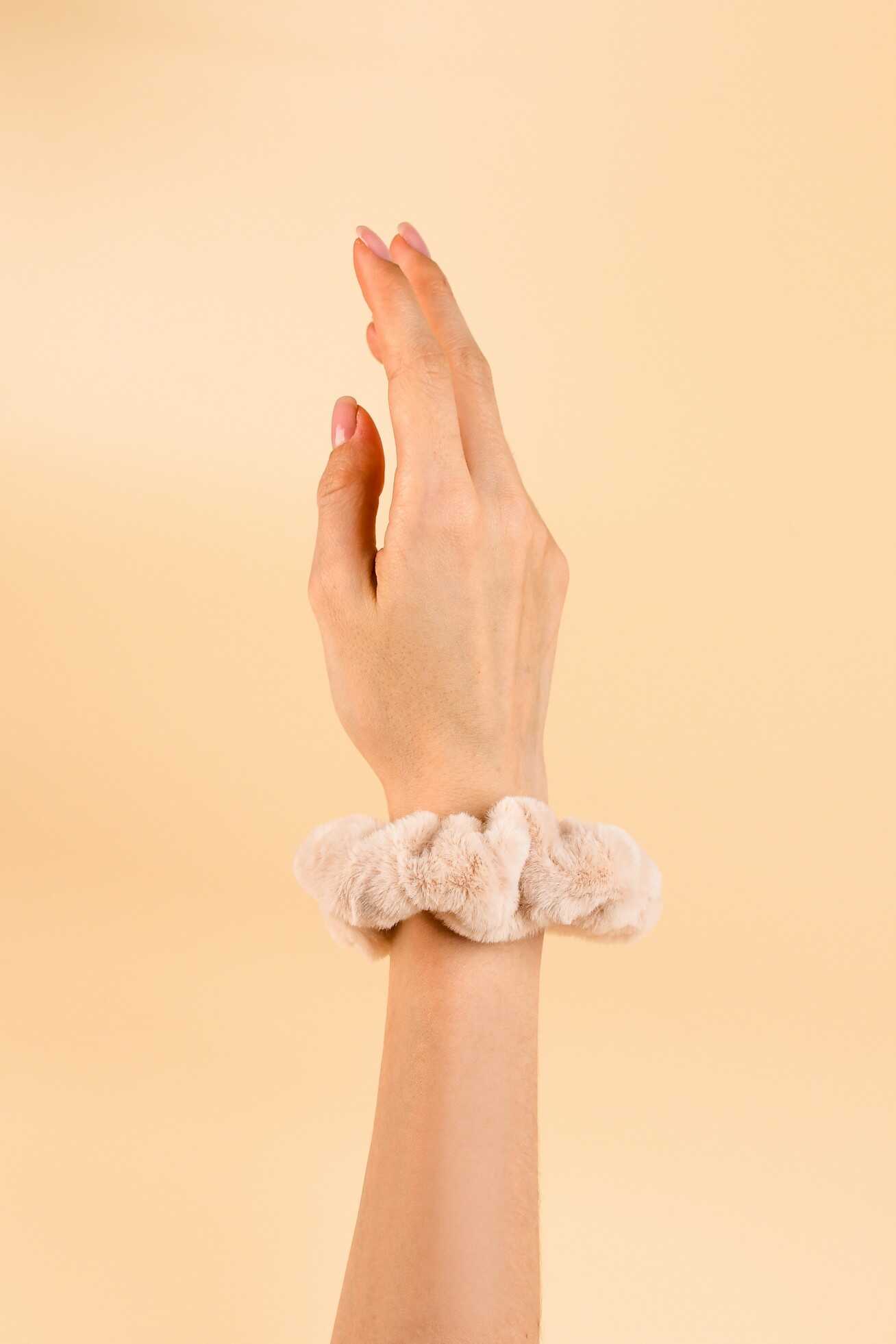 Резинка для волос арт. 71831 / 10 ПУШИСТАЯ (в наборе: 1шт., б/р, вулканизированная резина, полиэстер, цвет: бежевый, подложка из мелованного картона + ПЭТ-пакет с европодвесом)