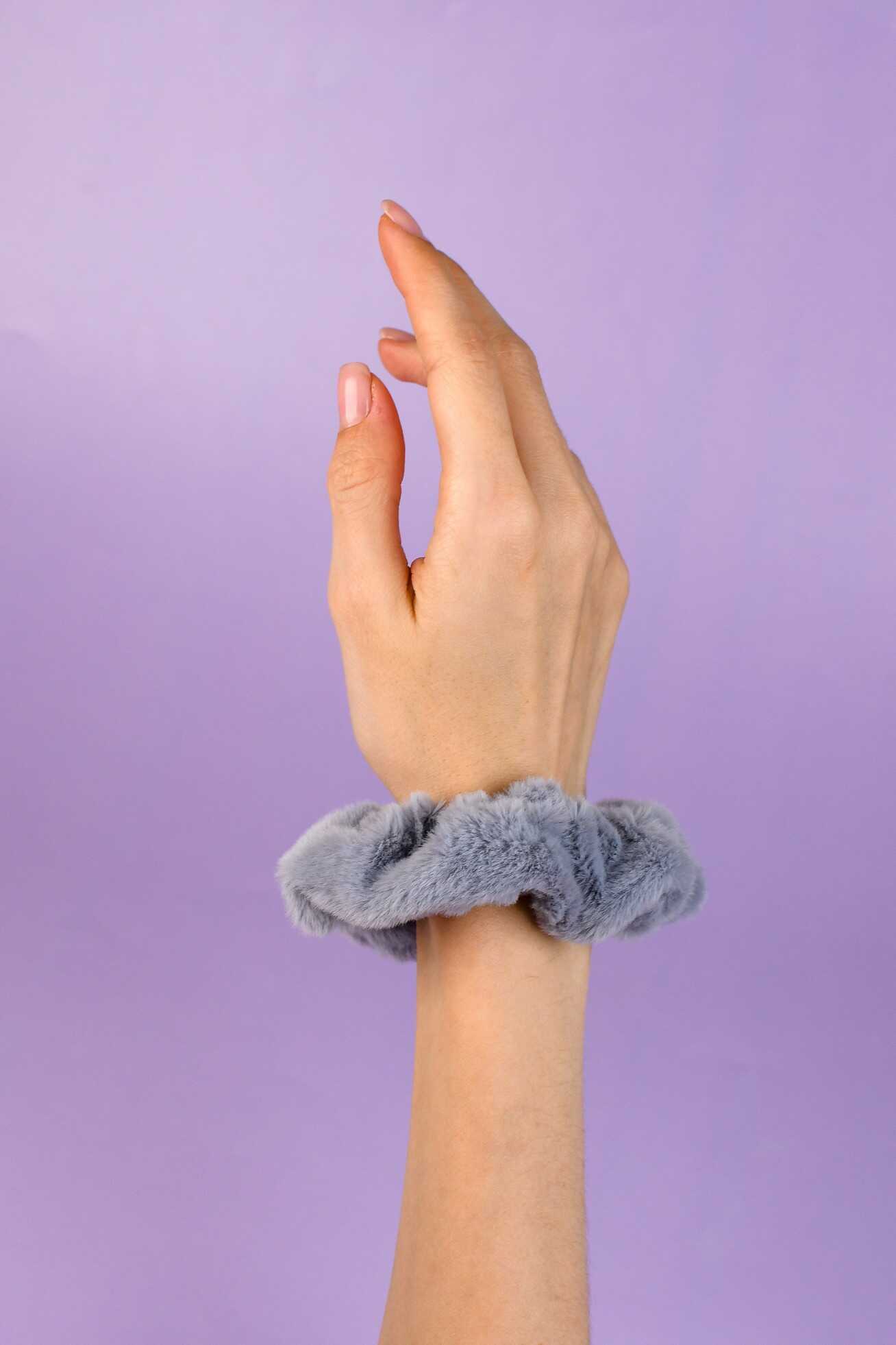 Резинка для волос арт. 71833 / 10 ПУШИСТАЯ (в наборе: 1шт., б/р, вулканизированная резина, полиэстер, цвет: серый, подложка из мелованного картона + ПЭТ-пакет с европодвесом)