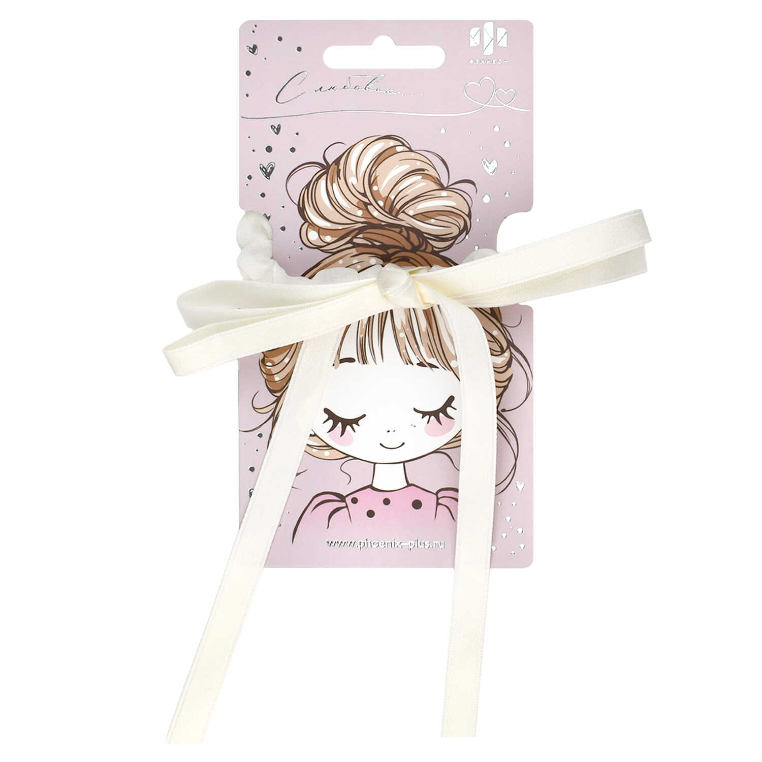 Резинка для волос арт. 71834 / 10 БАНТИК (в наборе: 1шт., б/р, вулканизированная резина, полиэстер, цвет: бежевый, белый, подложка из мелованного картона + ПЭТ-пакет с европодвесом)