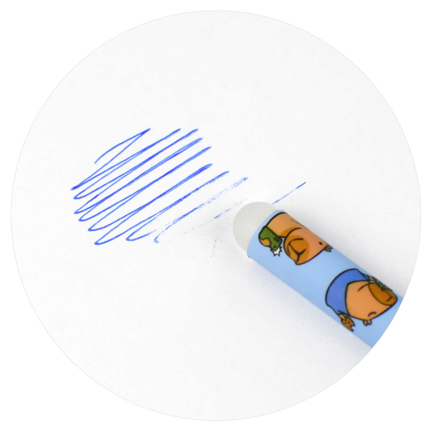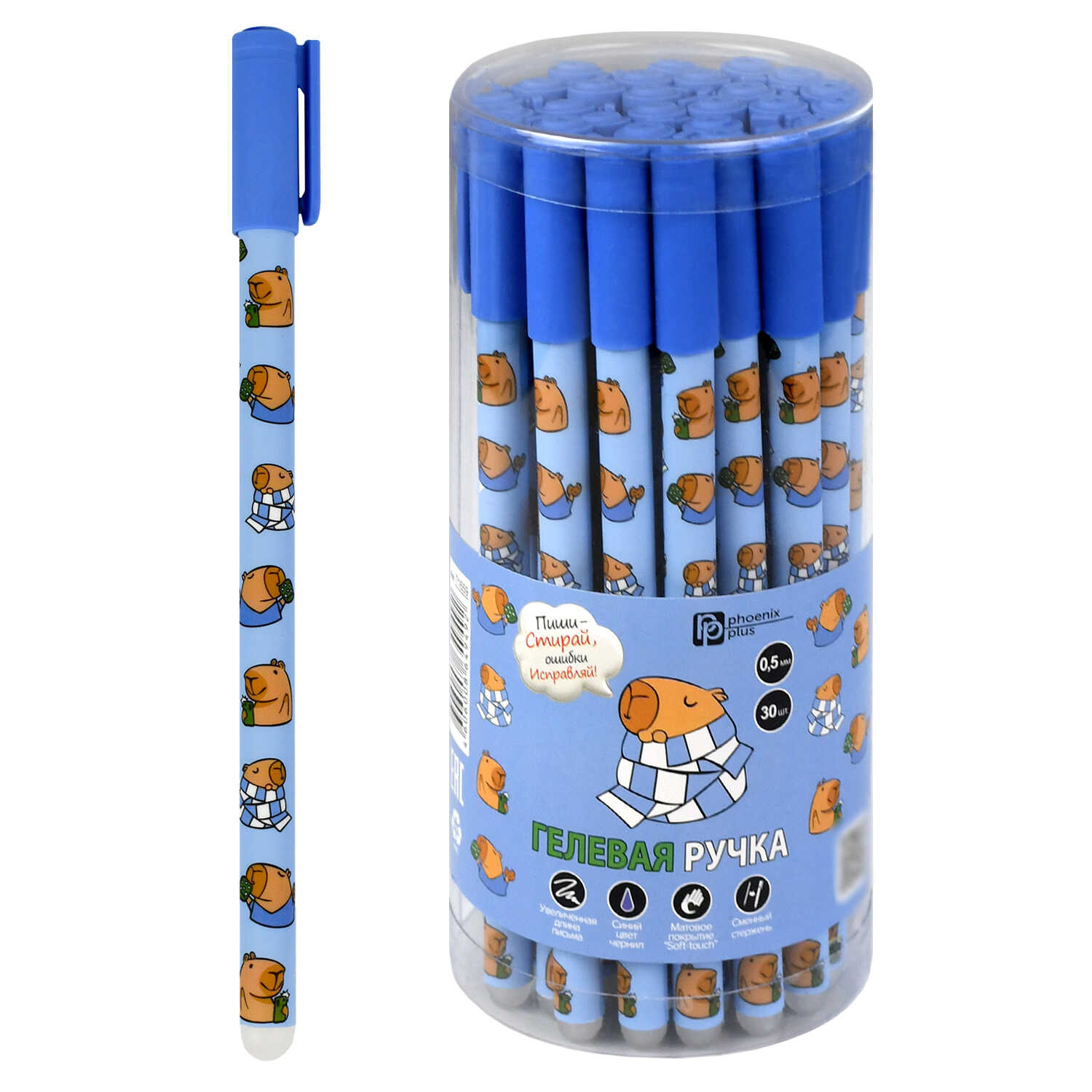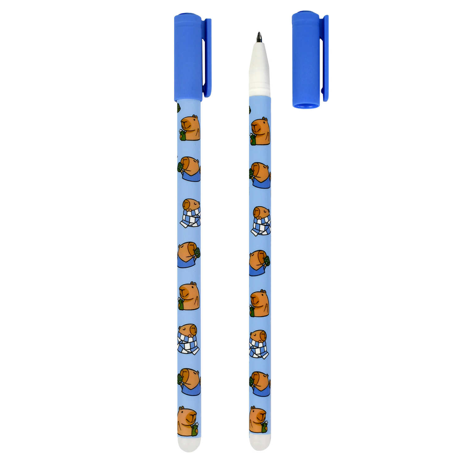 Ручка гелевая ПИШИ-СТИРАЙ арт. 71659 / 30 КАПИБАРА (неавтоматическая, 8х148 мм, цвет корпуса: голубой, оранжевый, материал корпуса: АБС-пластик, покрытие корпуса: софт-тач, стираемые чернила, 0,5 мм, цвет чернил: синий, стержень: сменный).
