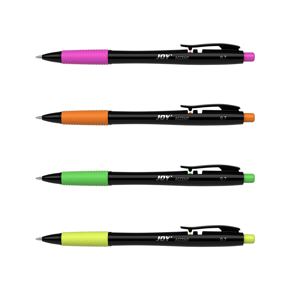 Автоматическая шариковая ручка Matic&Grip со стандартным типом пишущего узла и уникальной технологией Super Glide. Ручка имеет глянцевый круглый корпус черного цвета из упрочненного пластика с удобной грип-зоной из резины ярких неоновых цветов. 5-канальный пишущий узел с диаметром шарика 0.7 мм в сочетании с чернилами пониженной вязкости обеспечивает мягкое и быстрое письмо без усилий. Длина непрерывной линии составляет 1300 м при толщине 0.35 мм, что является одним из лучших показателей в своей категории.