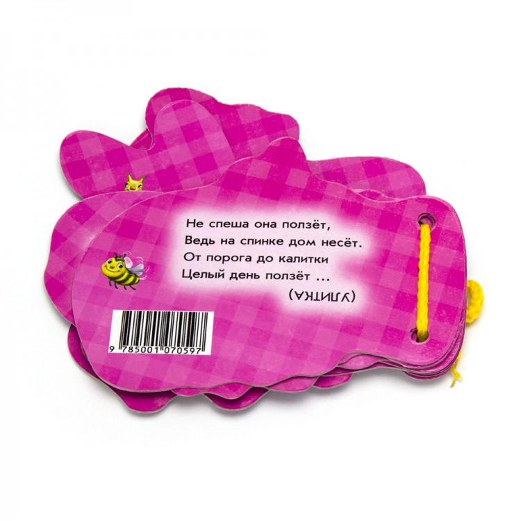 Серия "Отгадай-ка!" создана специально для самых маленьких. Каждая страничка книжки - это прочная фигурка в форме машинки, фрукта, зверушки... Развяжите шнурок и Вы получите замечательные карточки для игры в слова и знакомства малыша с окружающим миром! К тому же на обороте каждой странички Вы найдёте забавные загадки-доскладушки, которые помогут развить речь и воображение малыша!