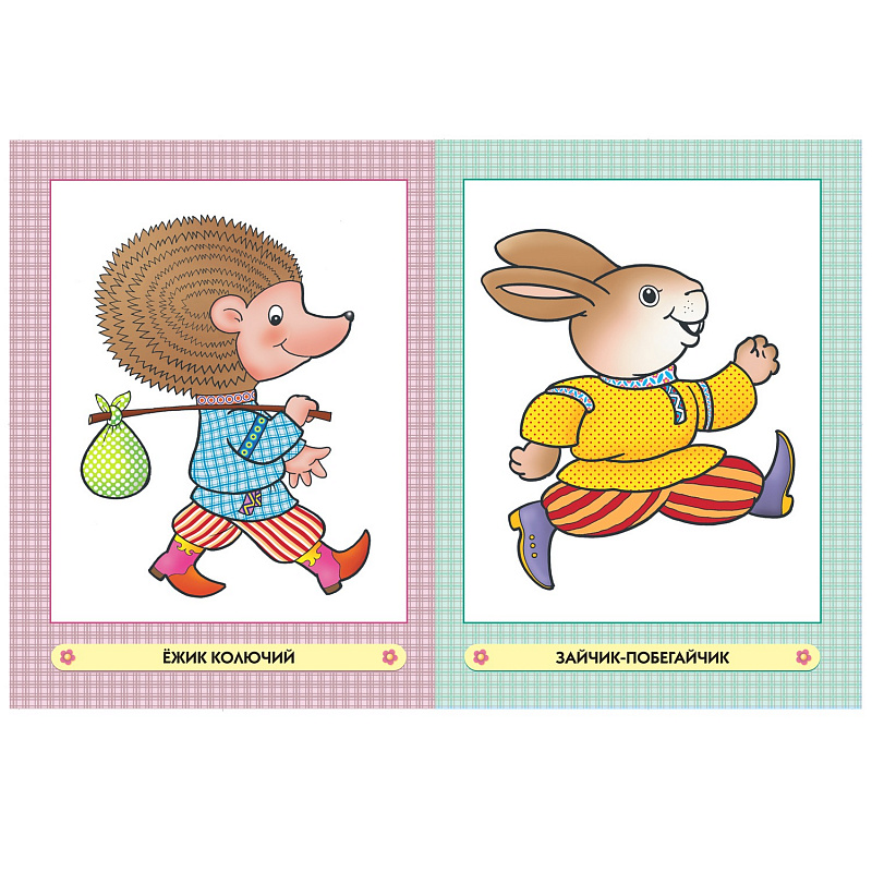 В книжке всего 13 сказочных героев: Конь-огонь, мишка-топтыжка, бычок-черный бочок, петушок-золотой гребешок, сова-большая голова, лисичка-сестричка, коза-дереза, ежик колючий, зайчик-побегайчик, лягушка-квакушка, мышка-норушка, кот-мурлыка, пес-черный нос.