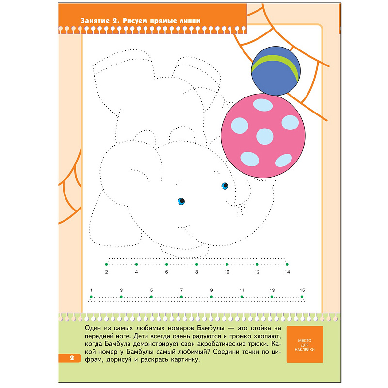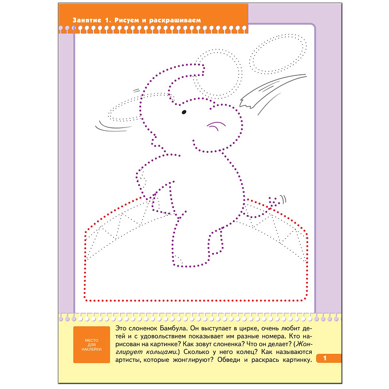В книгу вложены наклейки со слоненком, которые помогут поощрить и заинтересовать ребенка.