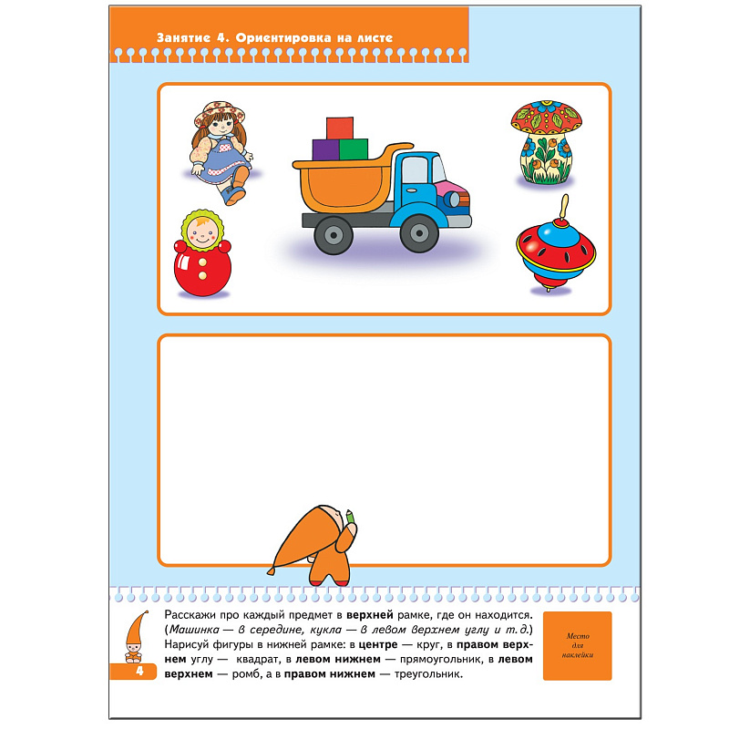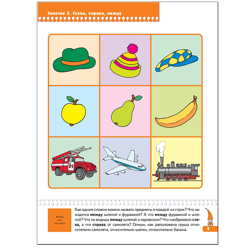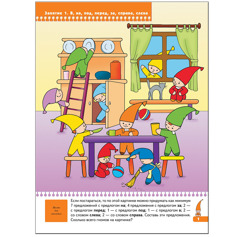 Книга развивает комплексное мышление, позволяет в игровой форме изучить пространство и время, подготовить руку к письму.