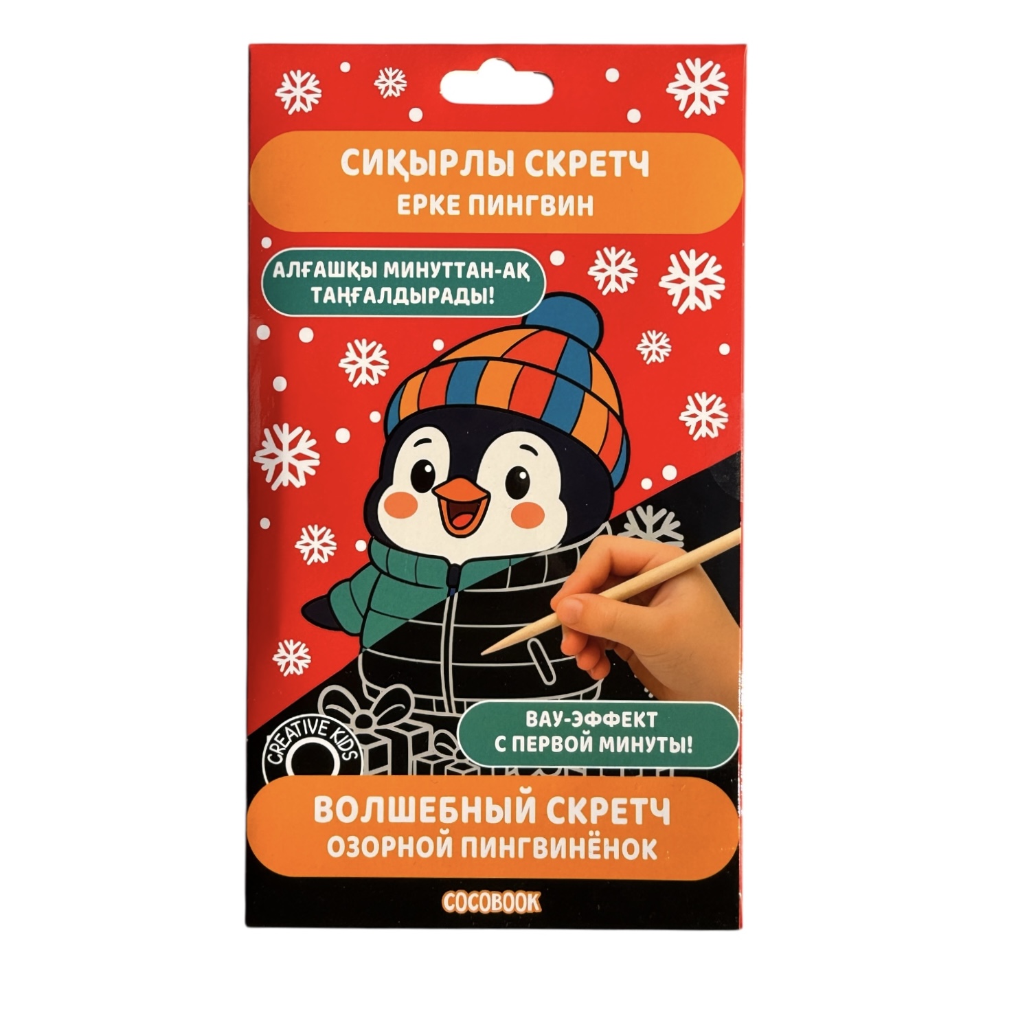 «Ерке пингвин» сиқырлы скретчін жасап, шығармашылық әлеміне бойлаңыздар! Шағын, бірақ әсері мол формат сүйкімді пингвин жайлы түрлі хикаялар ойлап табуға мүмкіндік береді.