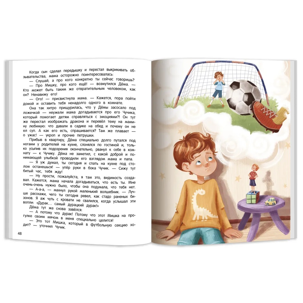 Мы все - и взрослые, и дети - ежедневно сталкиваемся с гаммой самых разных чувств. Кому-то справляться с сильными эмоциями проще, кому-то - сложнее, но понимать, что сейчас происходит, важно каждому. Умение распознать свои чувства и прожить их бережно, без вреда для себя и окружающих - фундамент эмоционального интеллекта. Но особенно зтот навык важен для чувствительных и ранимых детей, которые острее реагируют на все внешние раздражители. Лёля Тарасевич, практикующий психолог и публицист, написала историю про мальчика Дёму, который сталкивается с переживаниями, знакомыми каждому ребёнку. С помощью своего волшебного друга мальчик не только учится распознавать свои чувства, но и получает практические рекомендации, помогающие справиться с сильными эмоциями.