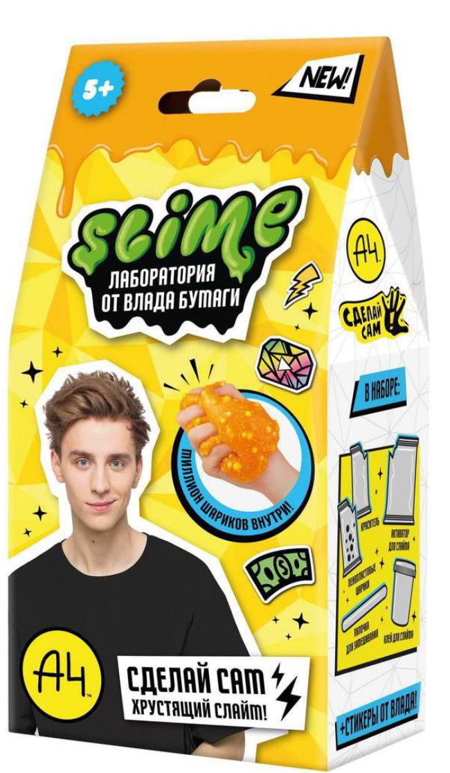 Slime Лаборатория от топового блогера Влада А4 – создай свой собственный слайм со своим супер-свойством! Светящийся в темноте, Хрустящий, Глянцевый как масло, Магнитный! В каждом наборе стикерпак от Влада А4!