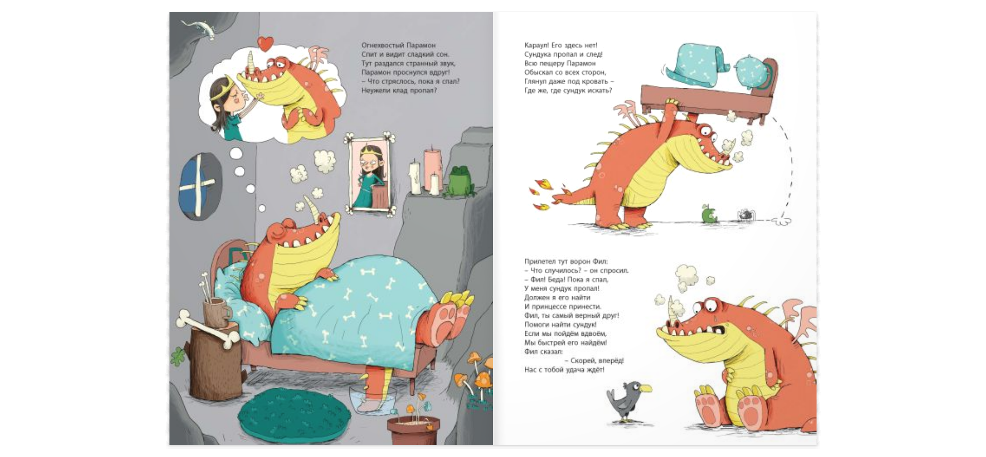 Огнехвостый дракон Парамон был влюблён в принцессу. Днём и ночью он охранял сундук с её сокровищами и никогда не заглядывал внутрь. Но однажды сундук кто-то похитил! Теперь Парамону надо отыскать пропажу. Ему предстоит долгий путь, его ждут запутанные лабиринты и сложные задания. Сможет ли дракон найти сокровища? Конечно, но только если читатели ему помогут! И, может быть, тогда все вместе они узнают, что же больше всего на свете любят принцессы и какая награда ждёт верного дракона…