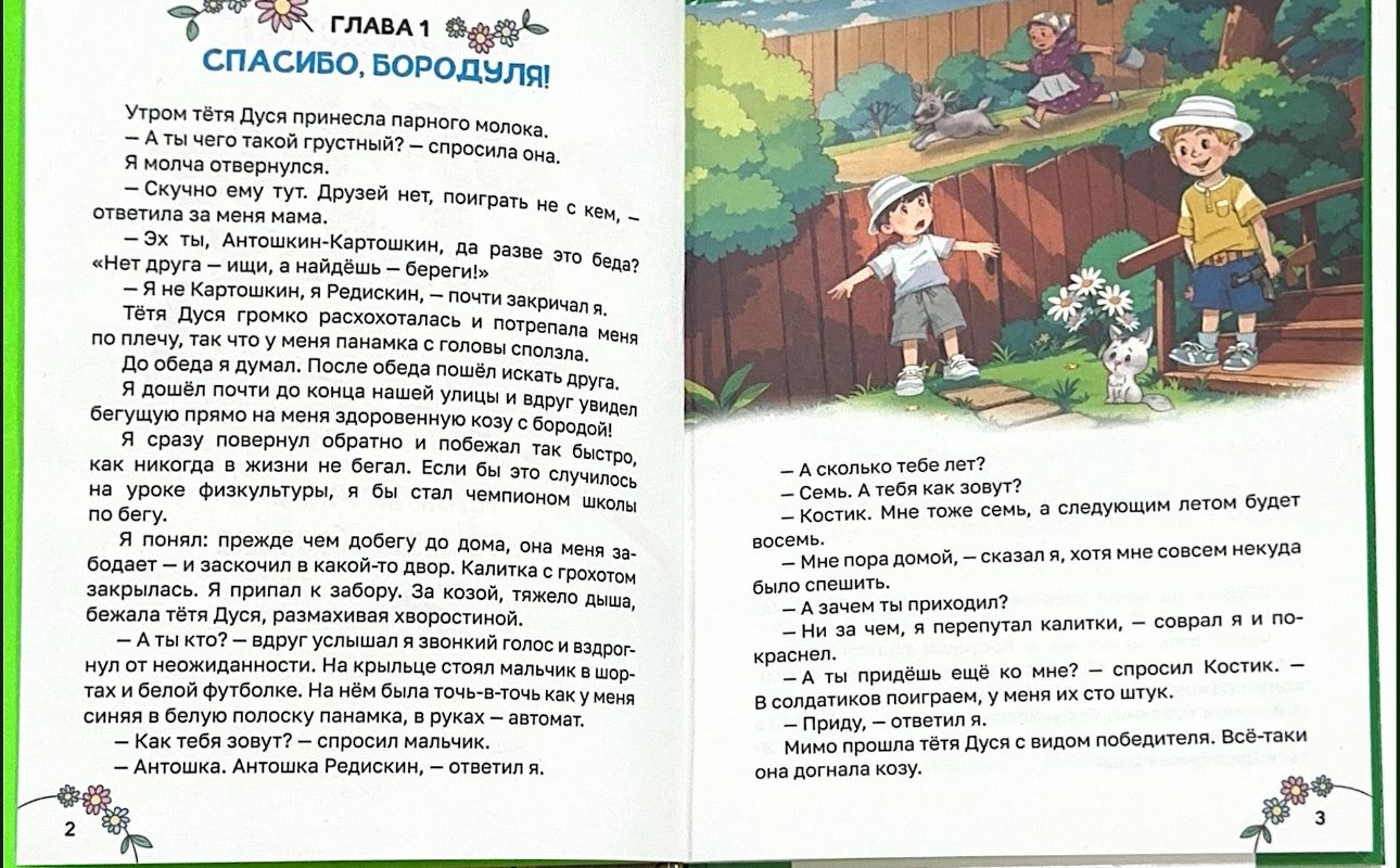 Антошке семь, он проводит лето в деревне с аппетитным названием Гороховка, и всё вроде бы хорошо, но у него совсем нет друзей. Одним прекрасным днём всё меняется, ведь он знакомится с Костиком! Да как знакомится: благодаря бородатой козе! С этой минуты жизнь становится веселее, и вот уже у Антошки много друзей, а каждый день случаются самые настоящие приключения! Ребята промокают под жутким ливнем, плавают в «настоящем» океане, забираются в заброшенный дом, спасаются от гусей, ловят рыбу и многое-многое другое.