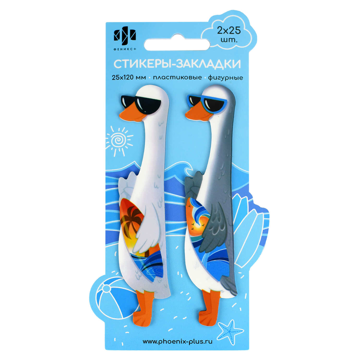 Стикеры-закладки пластиковые, 25х120 мм, 50 шт., арт. 65194 / 48 ГУСИ (материал: пластик кол-во цветов: 2, кол-во каждого цвета: 25, форма: фигурная, декор: полноцветная печать; наличие диспенсера: нет, индивидуальная упаковка: подложка с европодвесом из мелованного картона + ПЭТ-пакет)