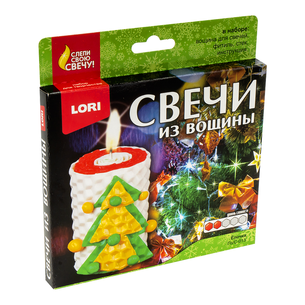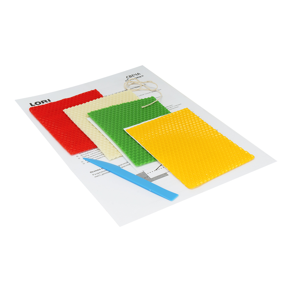 Вощина, из которой изготавливается свеча, выполнена из воска, который обеспечивает горение свечи. В комплектацию три цвета вощины, стек, фитиль и инструкция.
