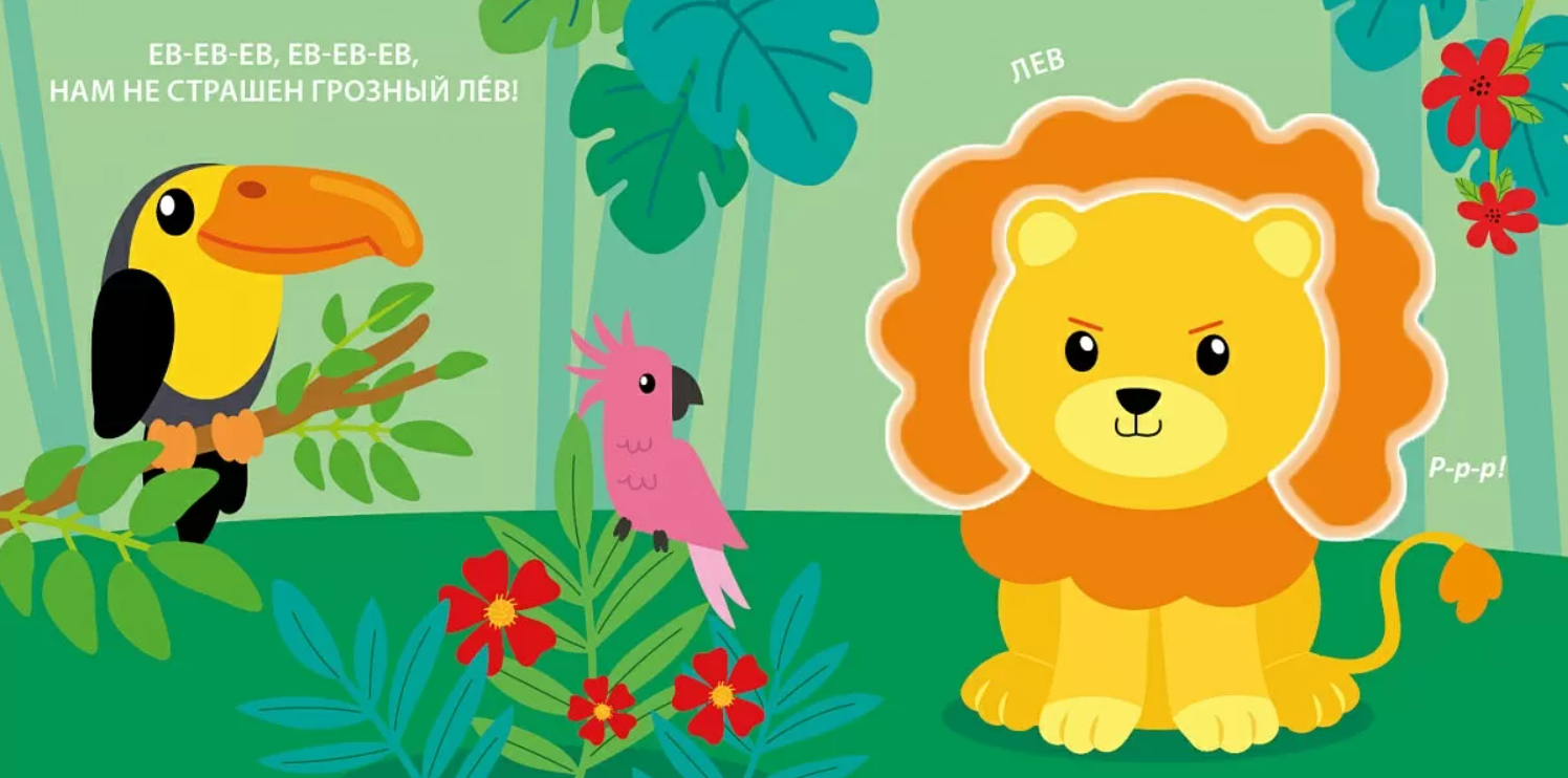 - Красочные и детализированные изображения диких животных, которые привлекают внимание малыша.