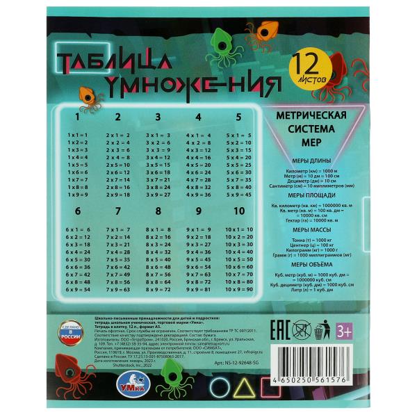 - таблица умножения и метрическая система мер на задней стороне обложки