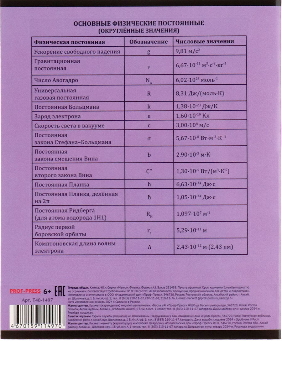 Тетрадь КЛЕТКА 48л. ФИЗИКА «МАНГА» стандарт, твин-лак
