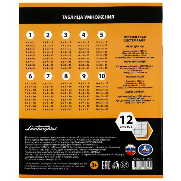 - таблица умножения и метрическая система мер на задней стороне обложки