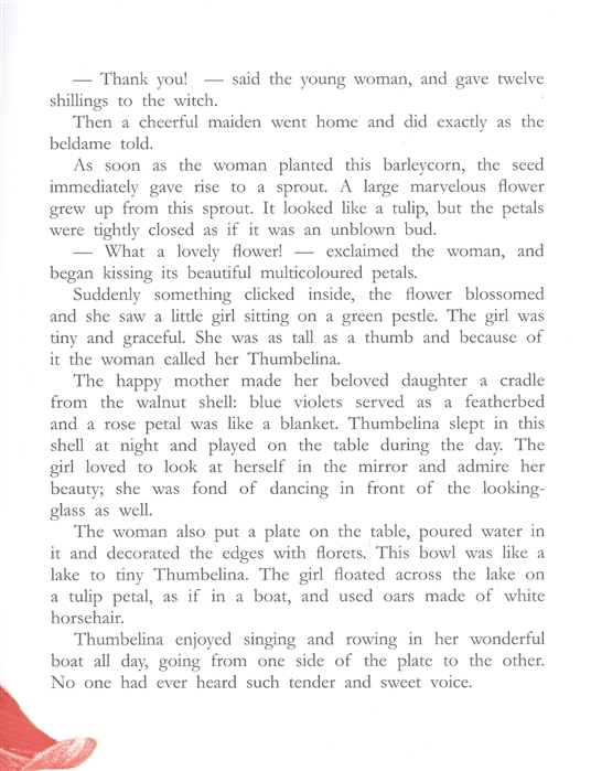 Специально для тех, кто изучает английский язык, мы рады представить любимую сказку с иллюстрациями молодого талантливого художника Екатерины Ефремовой. Её Дюймовочка широко распахнутыми глазами с невероятным любопытством смотрит на огромный мир. И мы вместе с ней любуемся яркими цветами, заглядываем в уютные норки, сочувствуем замёрзшей ласточке… А толстый крот неожиданно оказывается настолько пушистым и обаятельным, что его хочется погладить. Впрочем, Вы всё увидите сами, как только эта замечательная книжка окажется в ваших руках!