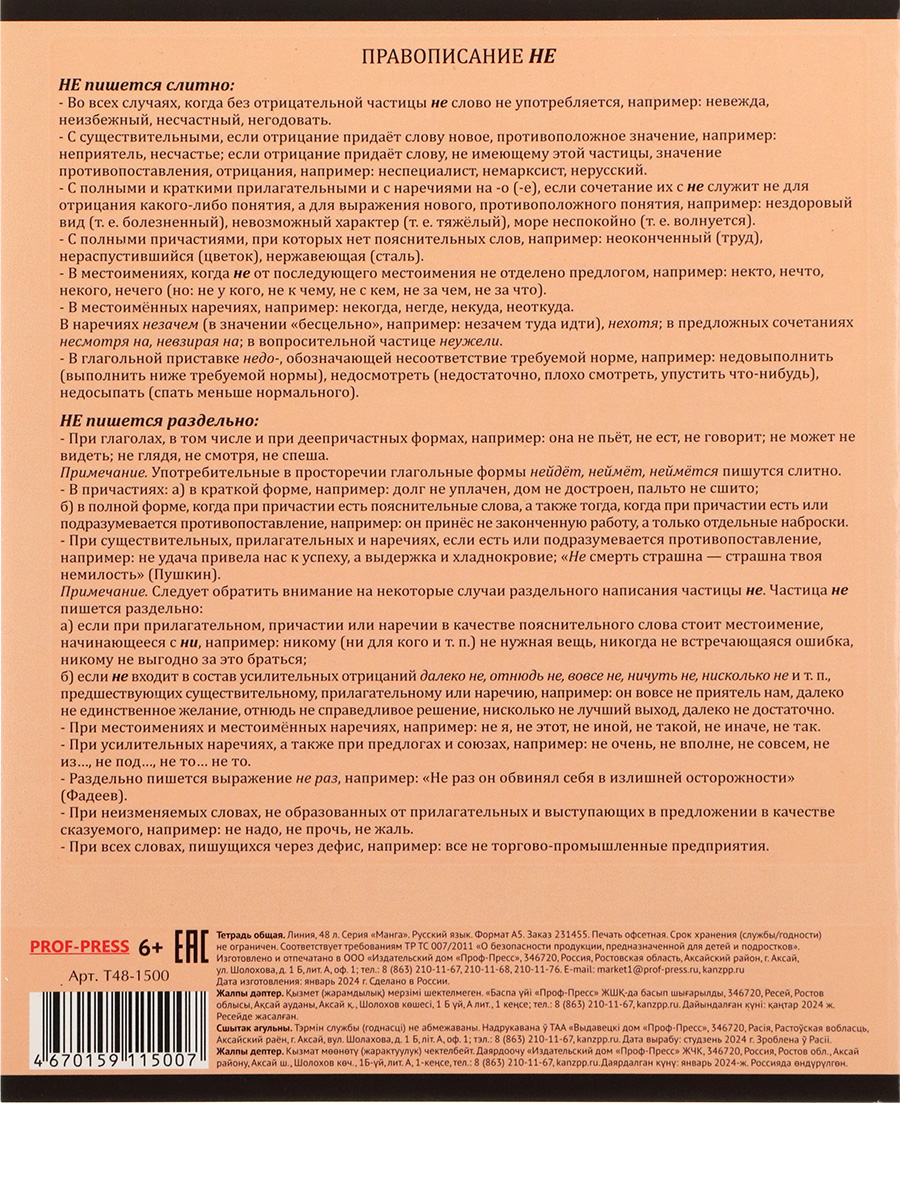 TM Prof-Press Тетрадь ЛИНИЯ 48л. РУССКИЙ ЯЗЫК «МАНГА» стандарт, твин-лак