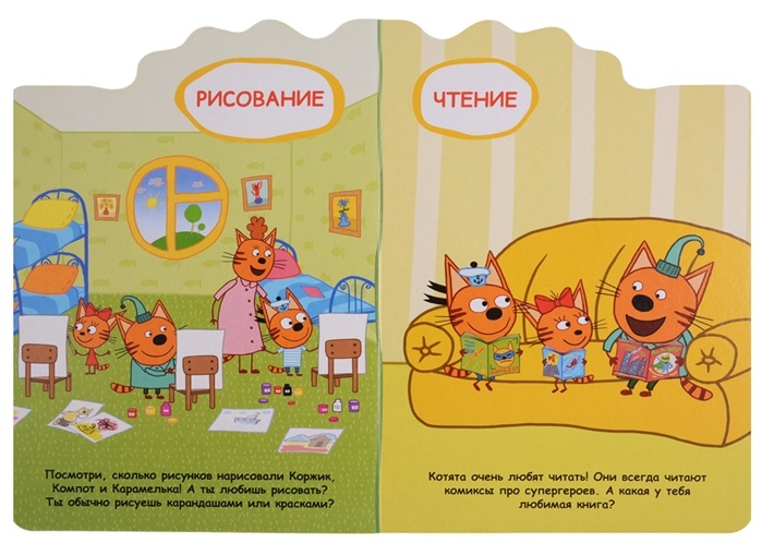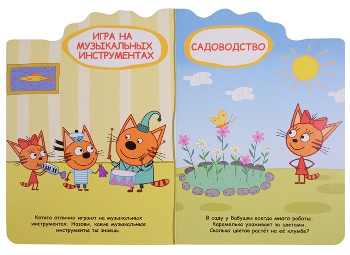 Обучающие книги для малышей с любимыми героями мультфильма "Три кота" помогут ребёнку на первых этапах его развития. С озорными котятами Коржиком,Компотом и Карамелькой расти и учиться гораздо интереснее!
