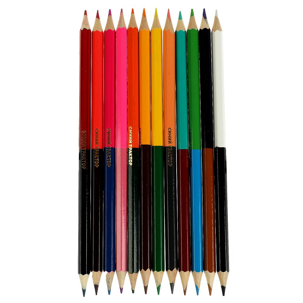 Цветные карандаши Синий ТРАКТОР двусторонние, 24цв
